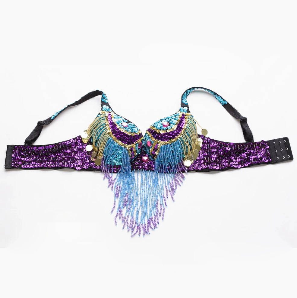 Цветные бусы, женская одежда, профессиональный Восточный танец, расшитый бисером, с блестками, топ для танца живота, Бюстгальтер, чашка, C-D