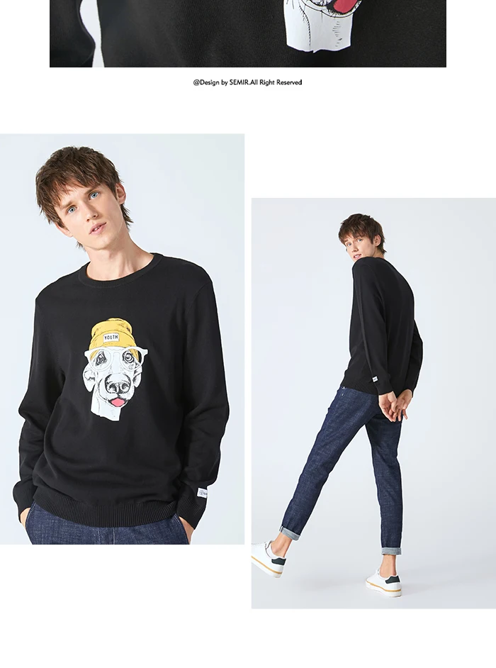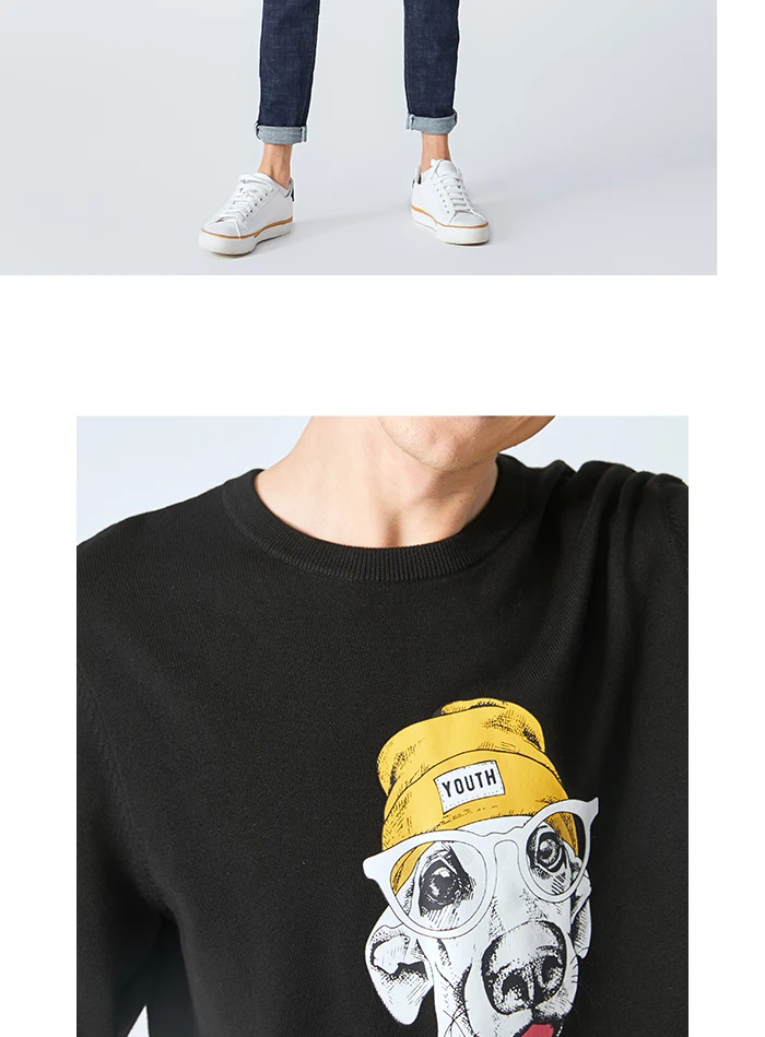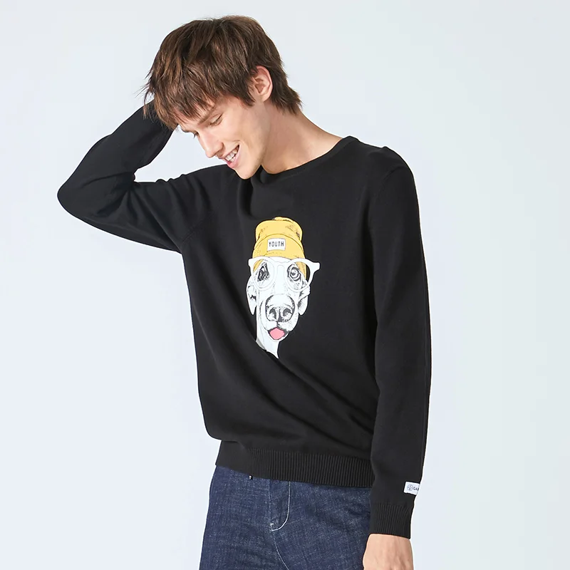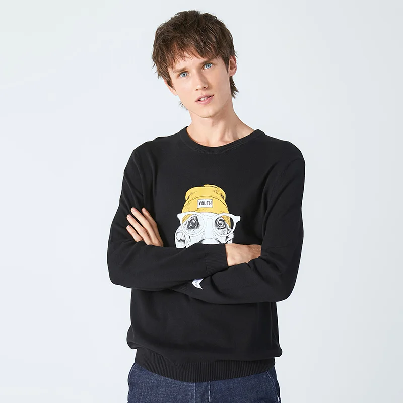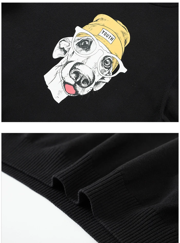 Свитер с героями мультфильмов, мужские осенние Топы с длинными рукавами, мужской черный свитер, хлопковый Повседневный Молодежный свитер для мужчин