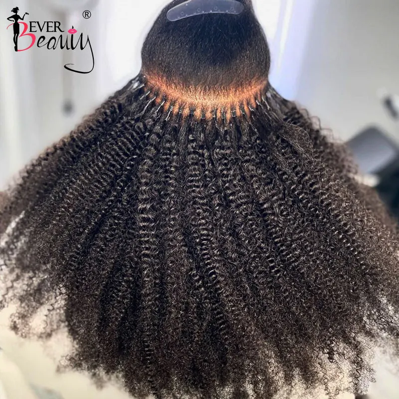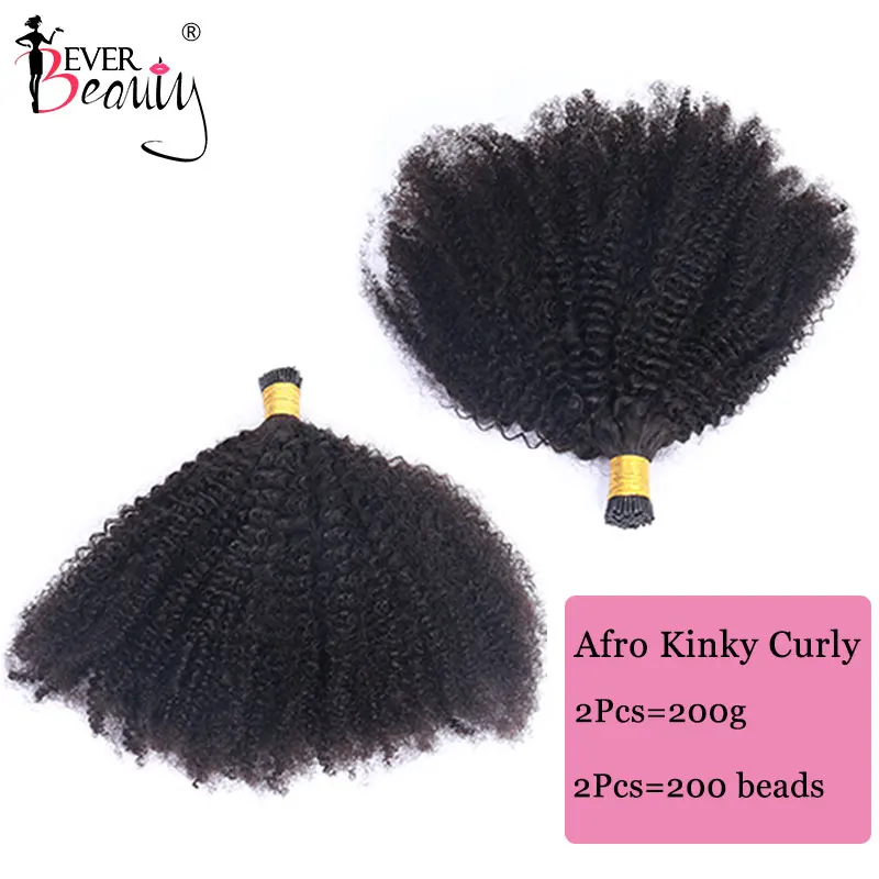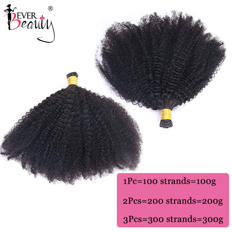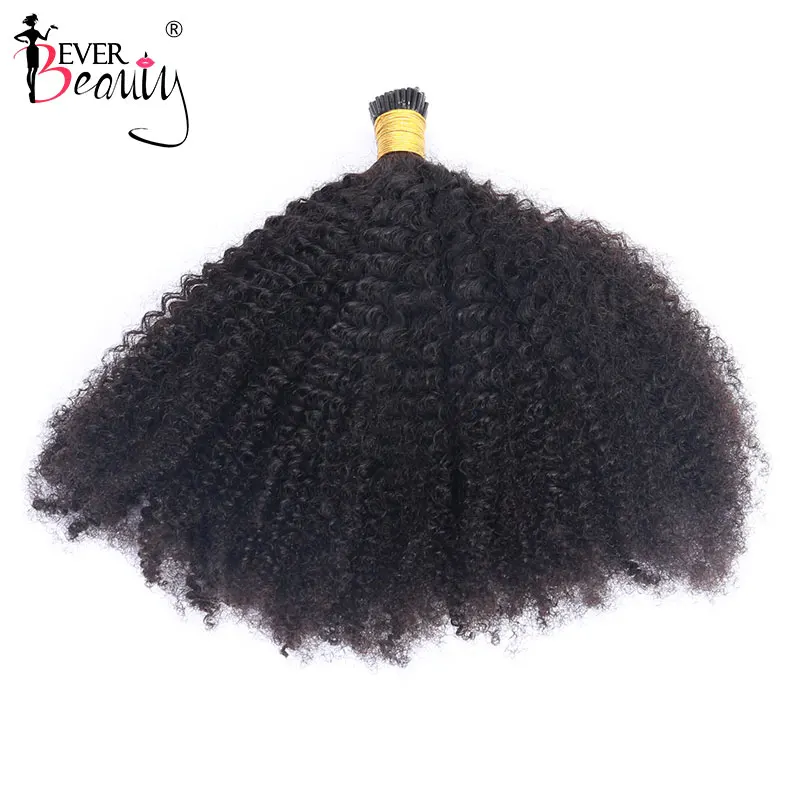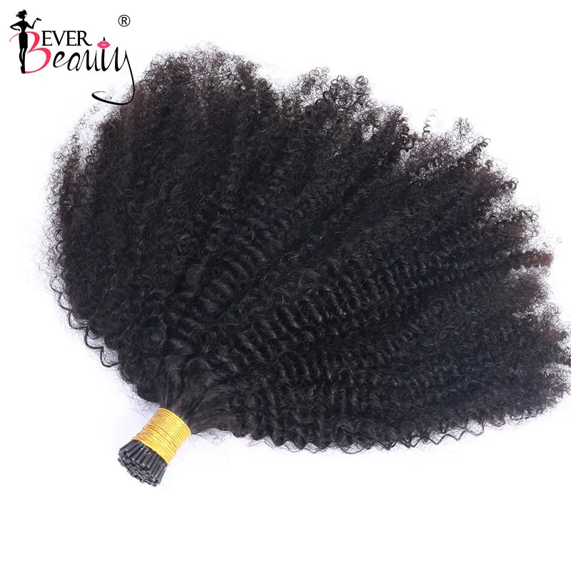 Афро Курчавые Кудрявые I-образные наконечники, 100% натуральные человеческие волосы, волнистые пряди, бразильские волосы для наращивания I-образных наконечников, натуральные черные Ever Beauty