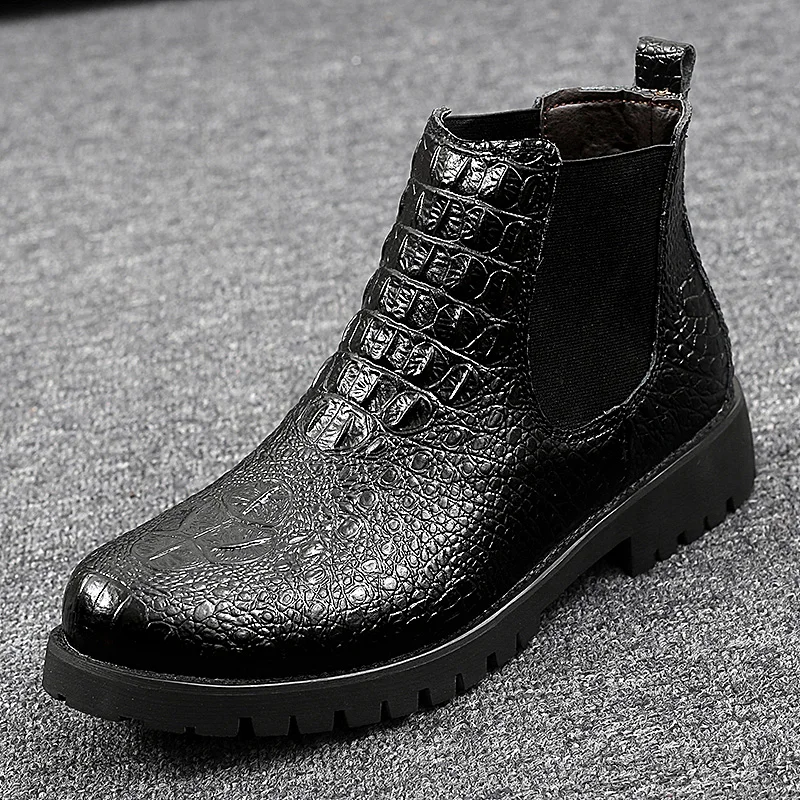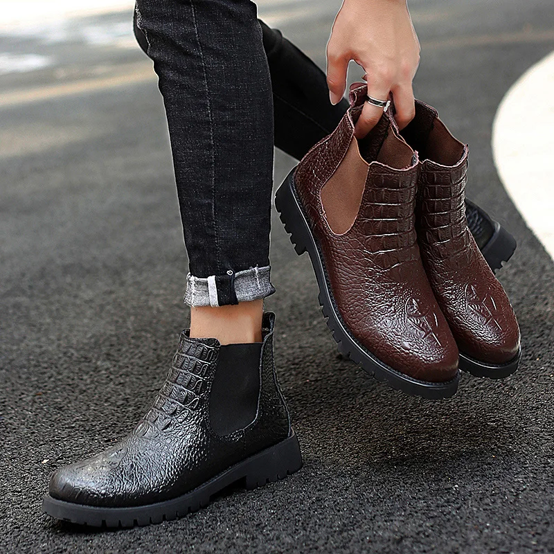 Мужские ботинки высокого качества, мужские ботинки челси, осенне-зимние женские теплые уличные зимние ботинки с крокодиловым узором, повседневная обувь