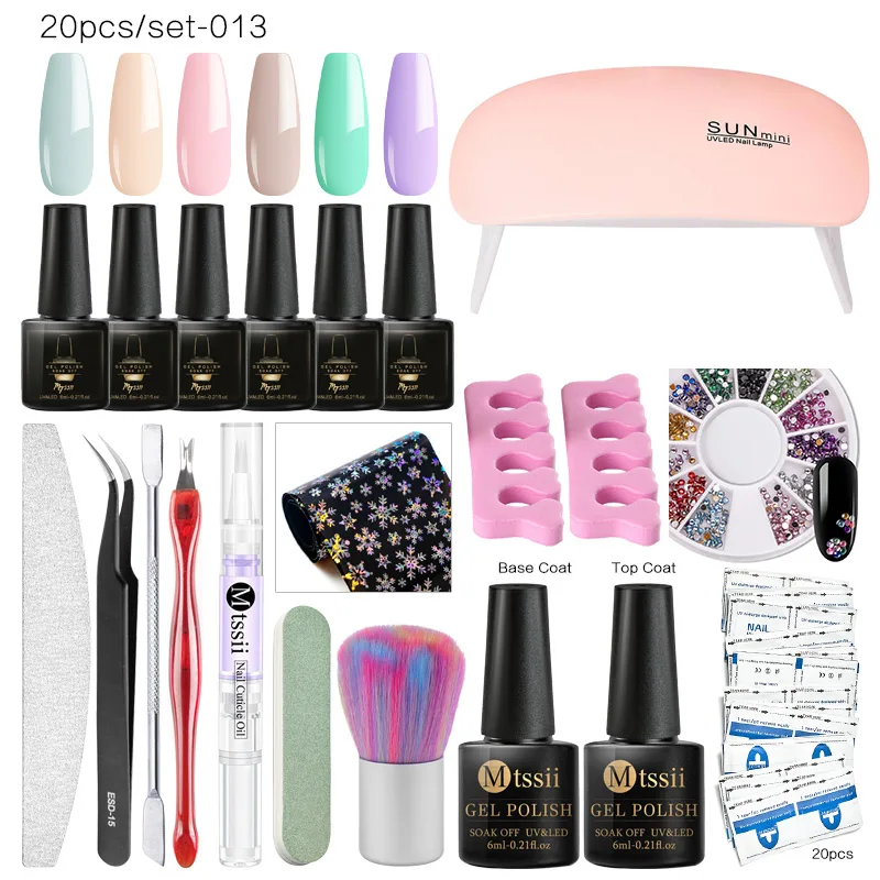 Mtssii 20 шт.компл. 6 Вт УФ светодиодный светильник для маникюра Набор гель-лаков для ногтей набор гель-лаков маникюрный набор для маникюра Набор инструментов для дизайна ногтей