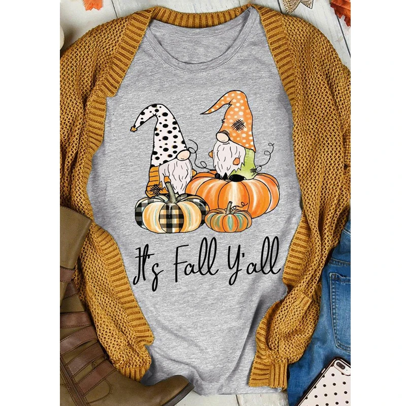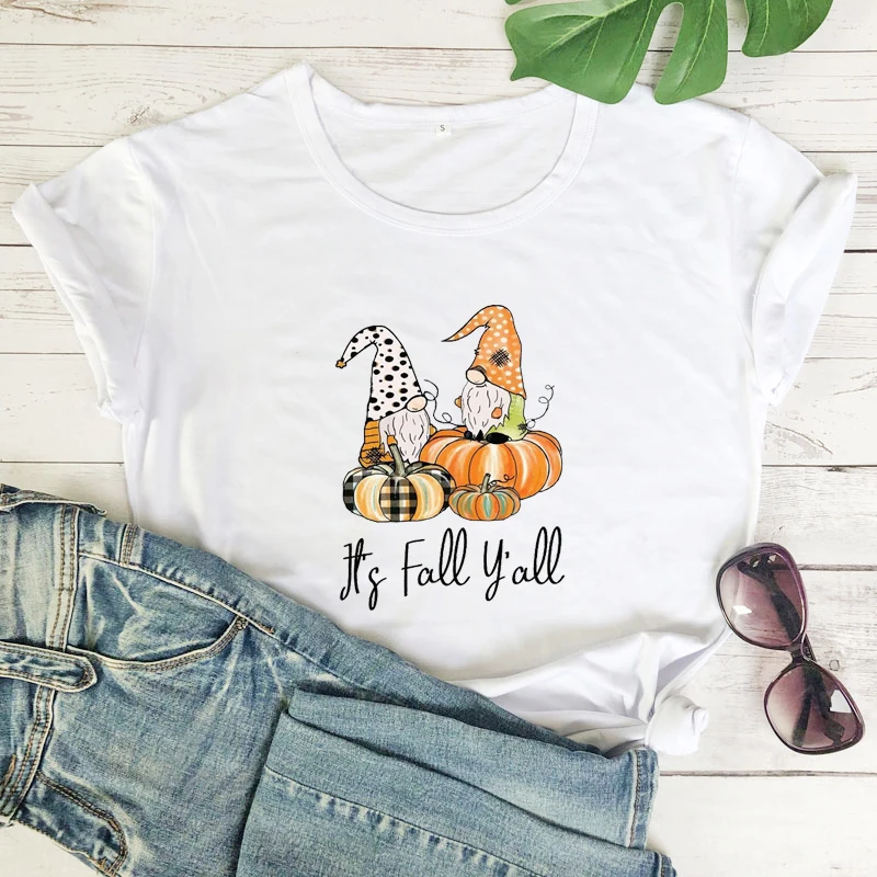 Футболка с цветным принтом It's Fall All Gnomies, милая Женская футболка для праздников на День Благодарения, забавная Осенняя футболка с коротким рукавом для сбора урожая