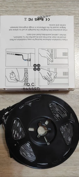 Очень быстрая доставка. Упаковка была качественной. Лента светится замечательно, цвет красивый, управление приложением с телефона работает без сбоев, но нет сохранения в памяти настрое. Ещё немного не приятный запах самой котушки, но это не столь важно. Всем доволен. Спасибо, буду заказывать ещё.