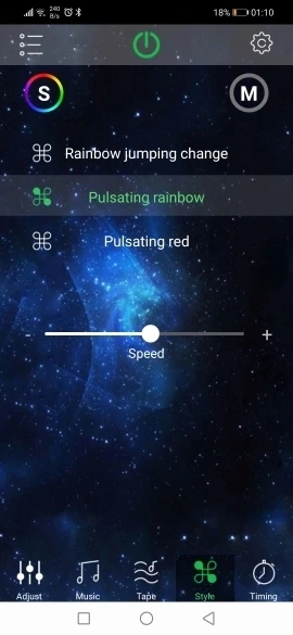 Хорошая лента, есть несколько программ, также можно использовать в качестве цветомузыки используя микрофон телефона. Рекомендую товар и этот магазин.