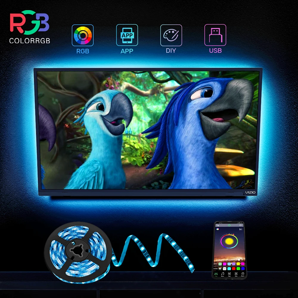 Светодиодная лента RGB, RGB, для телевизора, ПК, ноутбука, светодиодная ленсветильник питания с разъемом USB, RGB 5050, светодиодная подсветка с управлением через приложение