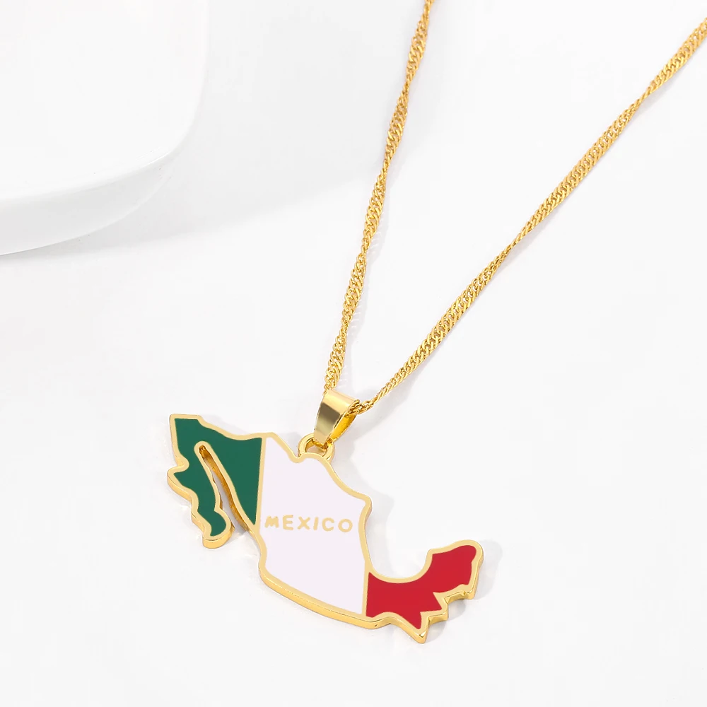Мексика карта с кулон в форме флага цепочка ожерелья для женщин ювелирные изделия золотой цвет Северная Америка Мексиканская патриотическая и цветная эмаль подарки