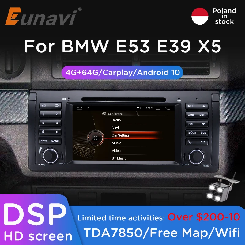Eunavi DSP 4G+64G Android 10 Car Radio GPS For BMW E53 E39 X5 Serie...