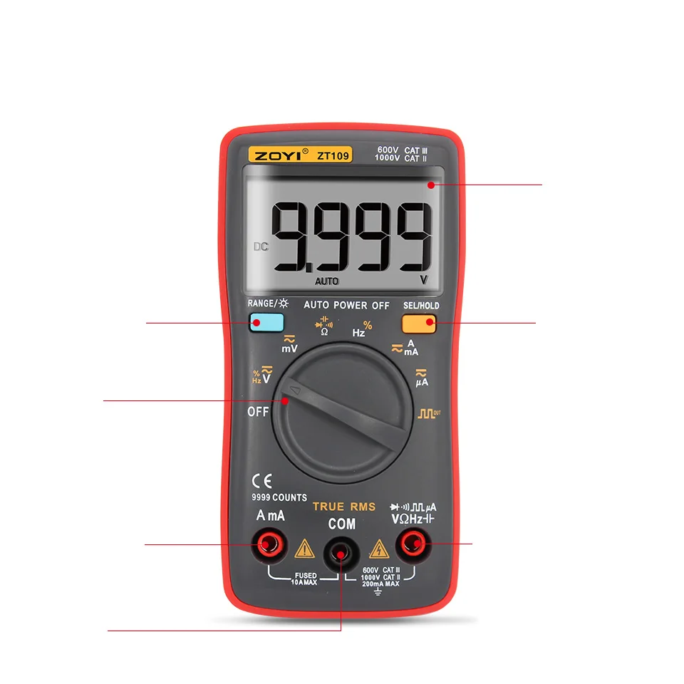 Профессиональный и практичный Цифровой мультиметр ZOYI ZT109, функция True RMS, 9999 отсчетов, подсветка, амперметр постоянногопеременного тока, вольтметр, Омметр