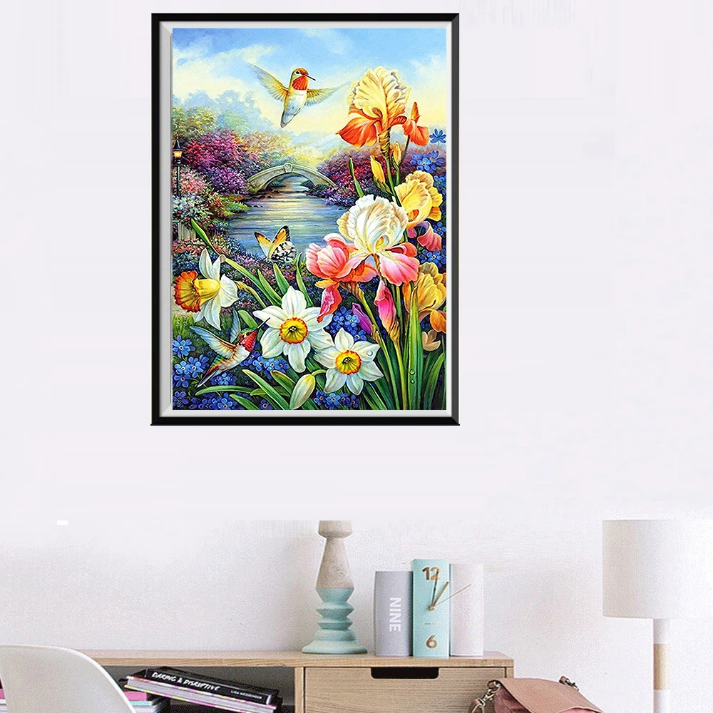 Алмазная живопись, Алмазная мозаика 5d с пейзажем и цветами, сделай...
