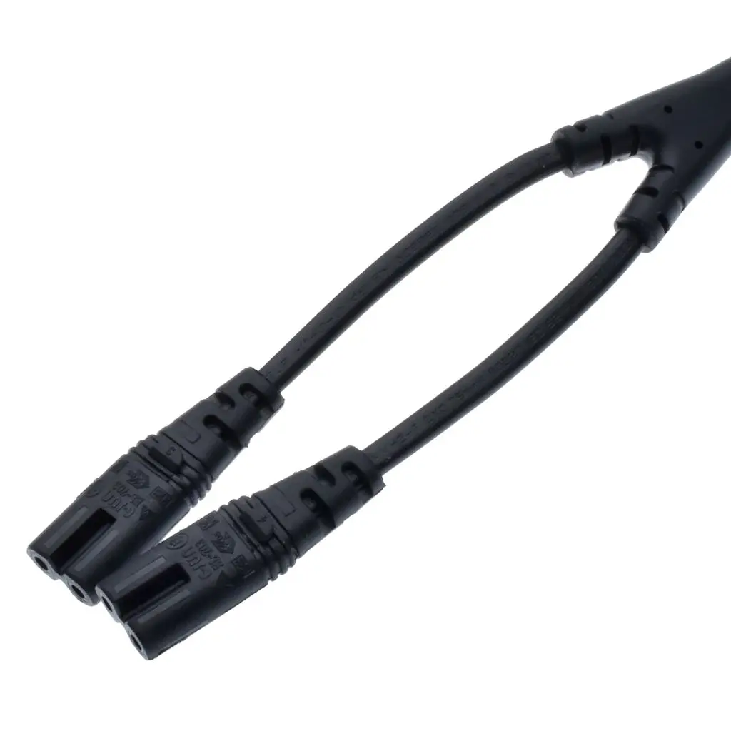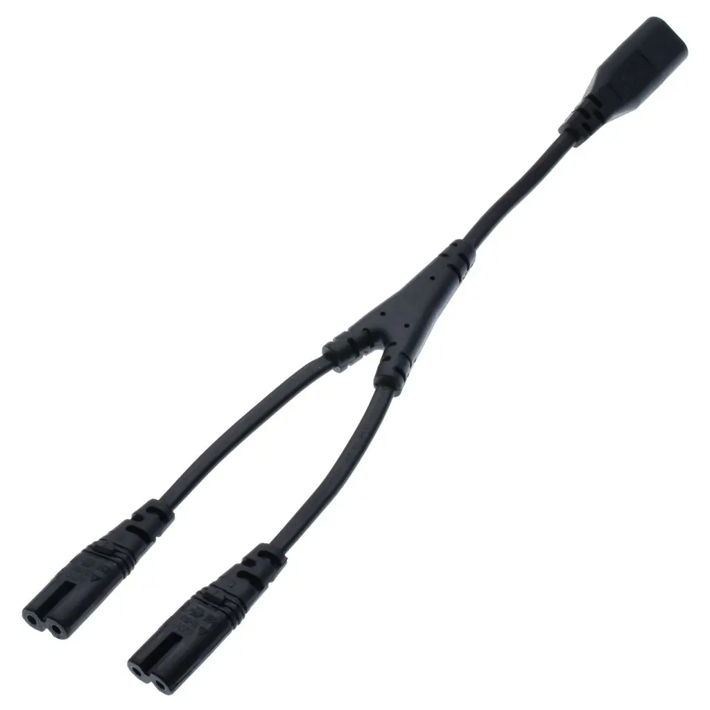 От IEC320 C8 До 2X C7 Y Сплит шнур питания переменного тока, IEC цифра 8 папа до 2 Женский 1 в 2 выхода кабель питания переменного тока, длина = 30 см черный
