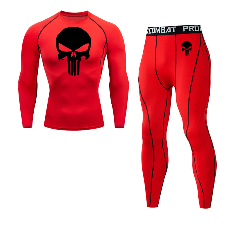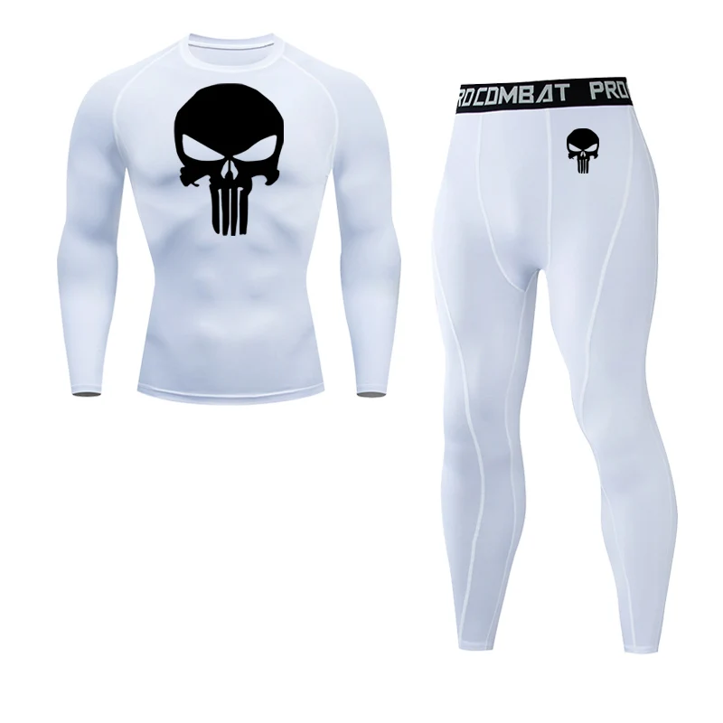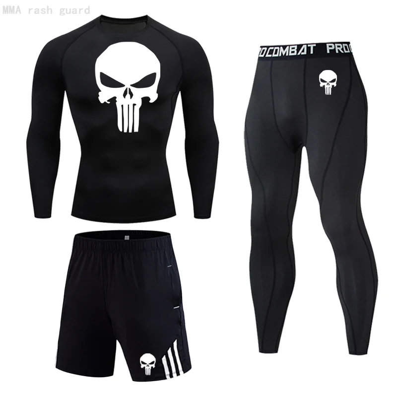 Новая мужская спортивная компрессионная одежда для бега, блузка для спортивного зала, леггинсы для фитнеса и занятий Рашгард для MMA Мужской череп юбка для девочек, комплект со штанами