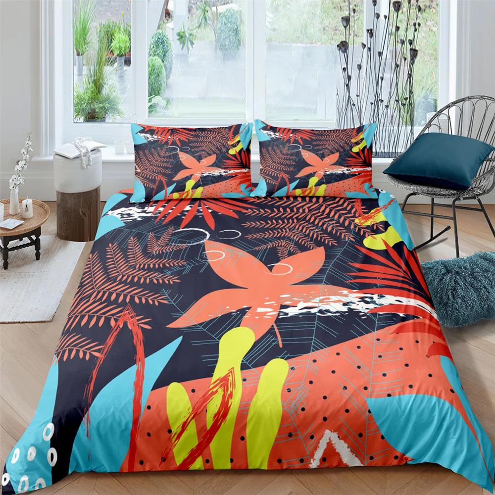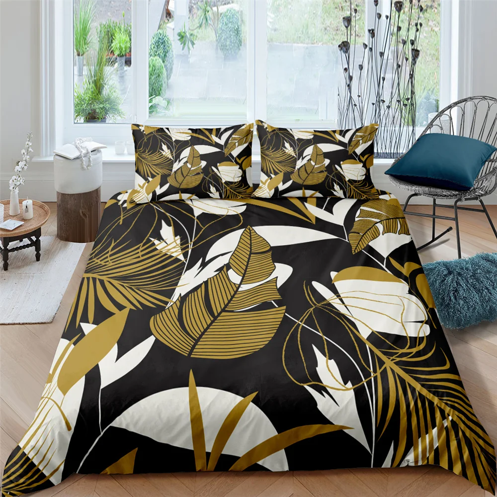 Комплект постельного белья из 3 предметов, с изображением листьев и...