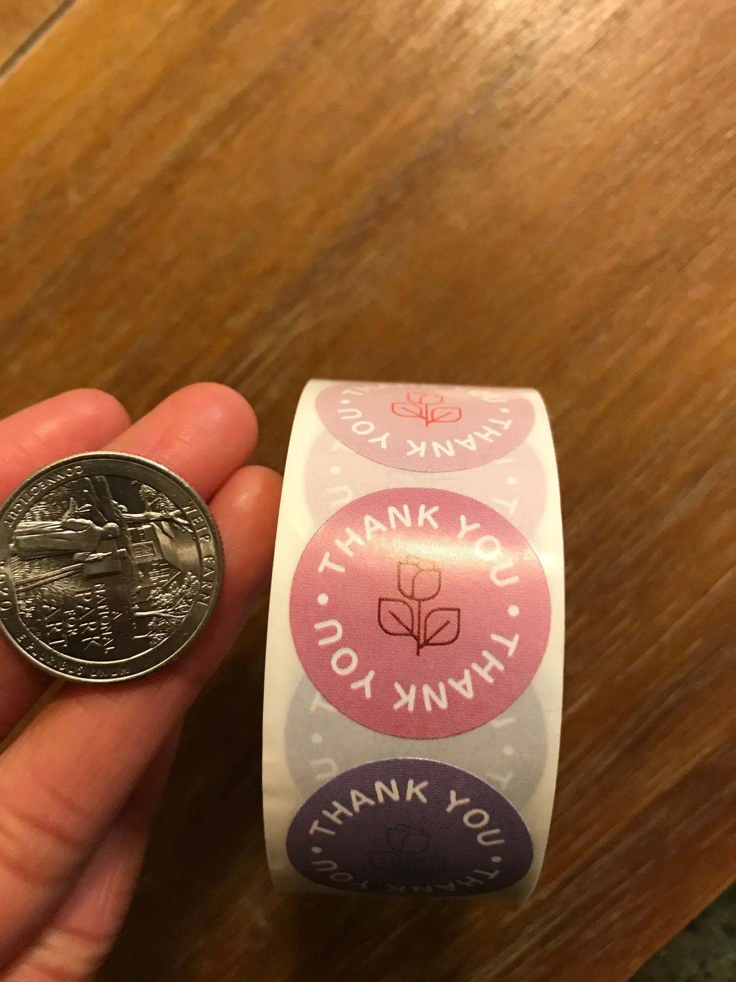 Они отличные! Пожалуйста, обратите внимание, что они только 1 дюйм, так что размер четверти. Им нужно большое давление, чтобы оставаться на конвертах. Последняя дата прибытия была Nov 20, но из-за covid прибыла на 1. 10 дней только очень хорошо!