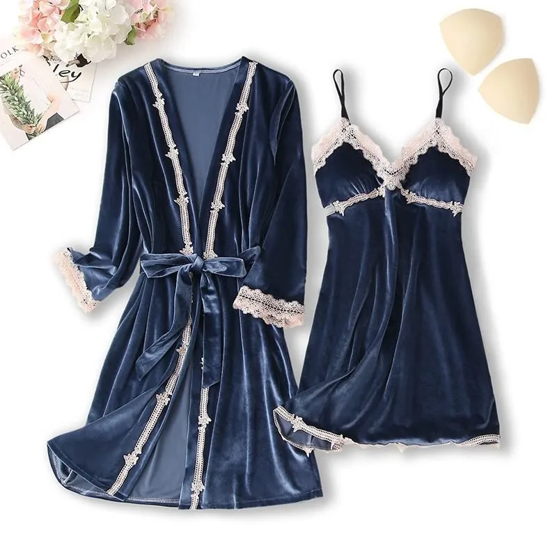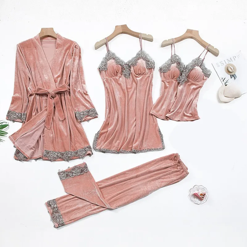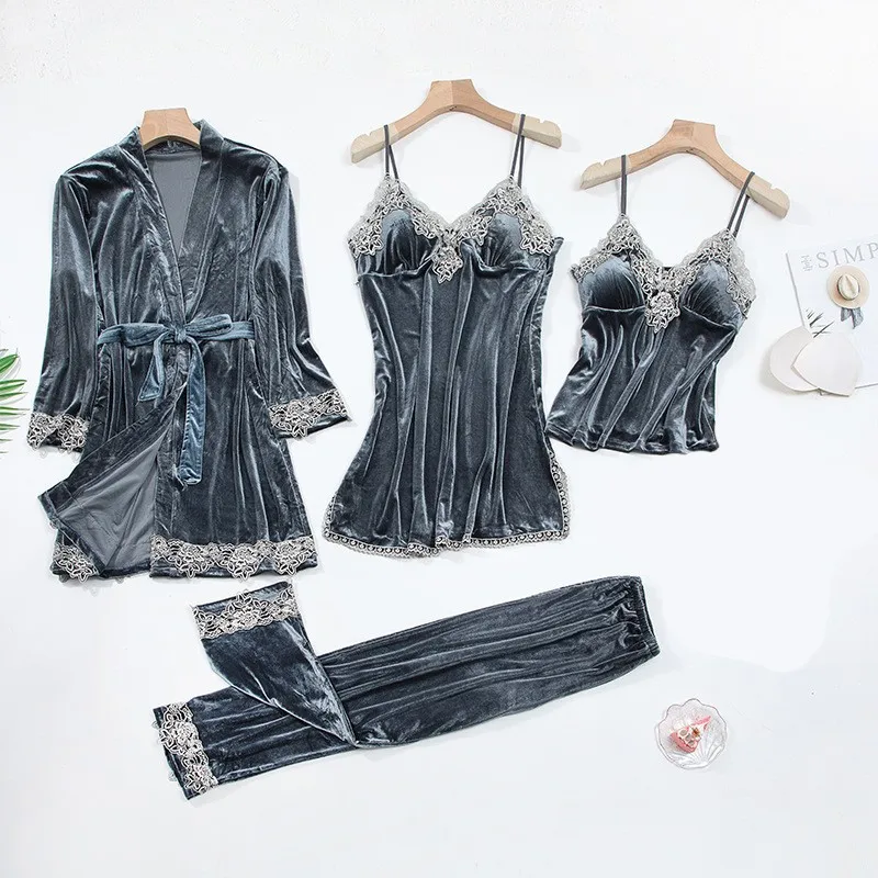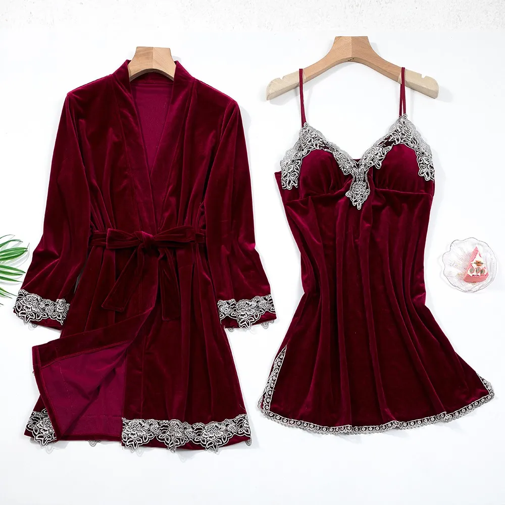 Сексуальная кружевная Пижама, женское нижнее белье, Велюровый комплект для сна, халат, бархатная мягкая домашняя одежда для сна