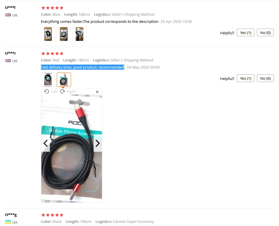 Доставка за 18 дней. Брал несколько штук разных размеров. Кабели достаточно гибкие, но, к сожалению, очень низкого качества. Мой телефон на "родном" кабеле позволяет заряжать себя током 1.95 А. Все проверки делал на почти полностью разряженном телефоне, когда он берет от блока питания максимальный ток. Короткие кабели по 0.25 метров дали только 1.65 А (проверено на четырех экземплярах). Метровые кабели дали ток 1.3 А. Из четырех кабелей длиной 1 метр один оказался с обрывом линии данных, то есть брак составил 25%. Что касается двух приобретенных мной двухметровых кабелей, то тут всё совсем плохо: длина кабелей составила 1.80 и 1.75 метра, что для меня было принципиальным; один кабель был с обрывом линии данных (итого 50% брака), а второй дал ток 1.15 А. В итоге я пожалел о покупке кабелей у этого продавца и не советую эти кабели к приобретению.