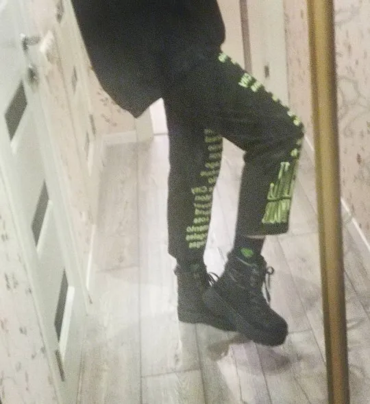 крутые штаны: все надписи хорошо пропечатаны, нитки не торчат (швы надежные), есть относительно глубокие карманы, шнурки регулируются под любую талию (на мою 63 см в обхвате подошло). Брала М размер, думала будут длинные и очень свободные, но они вполне обычные. Хотите пошире и подлиннее берите больше размером, талия все равно на шнурках. Пришло быстро)