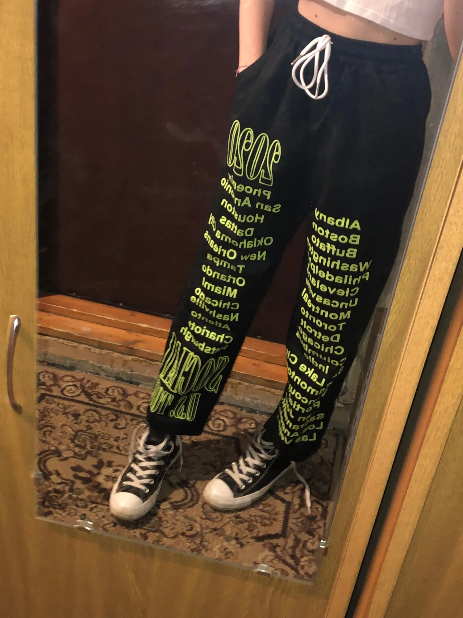 Название города искажено, но штаны в порядке, некоторые из принтов выцветали, когда он пришел