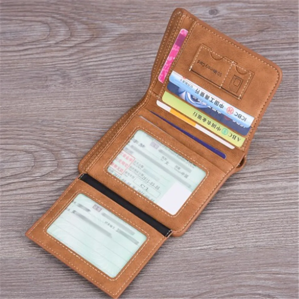 Мужской короткий кошелек тройного сложения для удостоверения личности, Женский деловой винтажный Кошелек двойного сложения для монет, мужской клатч, Карманный Кошелек для денег с зажимом