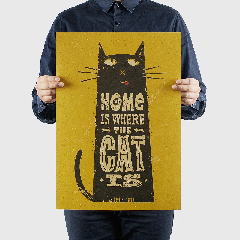 Ручная роспись Кот творческая Геометрическая иллюстрация ретро крафт-бумага постер Классический Ностальгический декор живопись сердцевина настенные наклейки