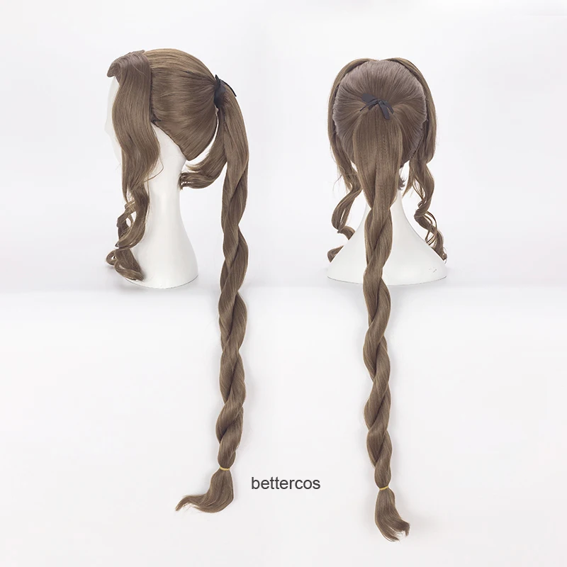 Final Fantasy VII FF7 Aerith Gainsborough Косплей парики длинные коричневые кудрявые термостойкие синтетические волосы парик + парик