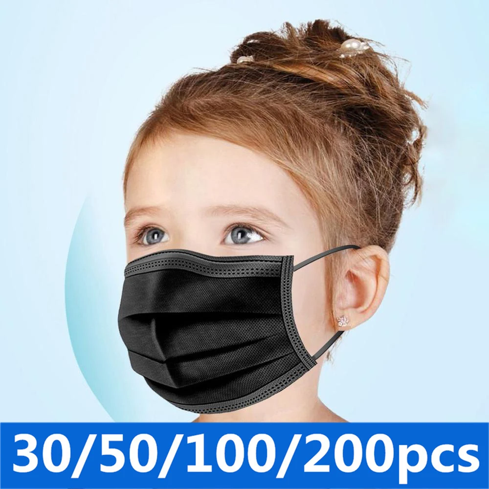 Одноразовая детская маска для лица, черная хирургическая маска для ...