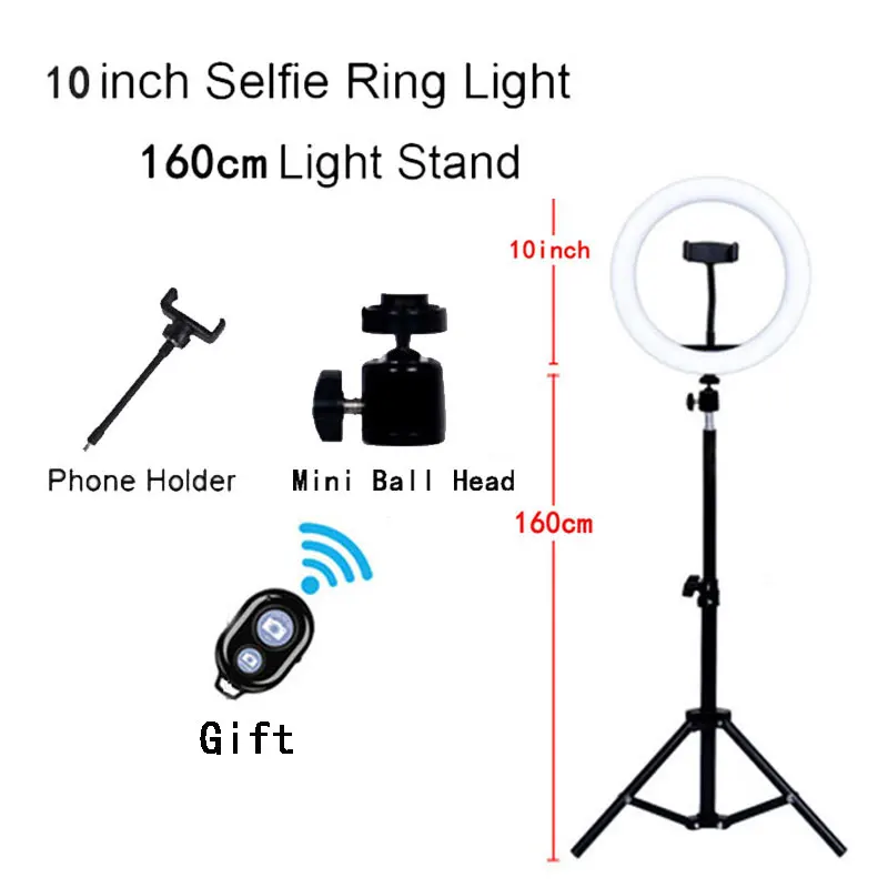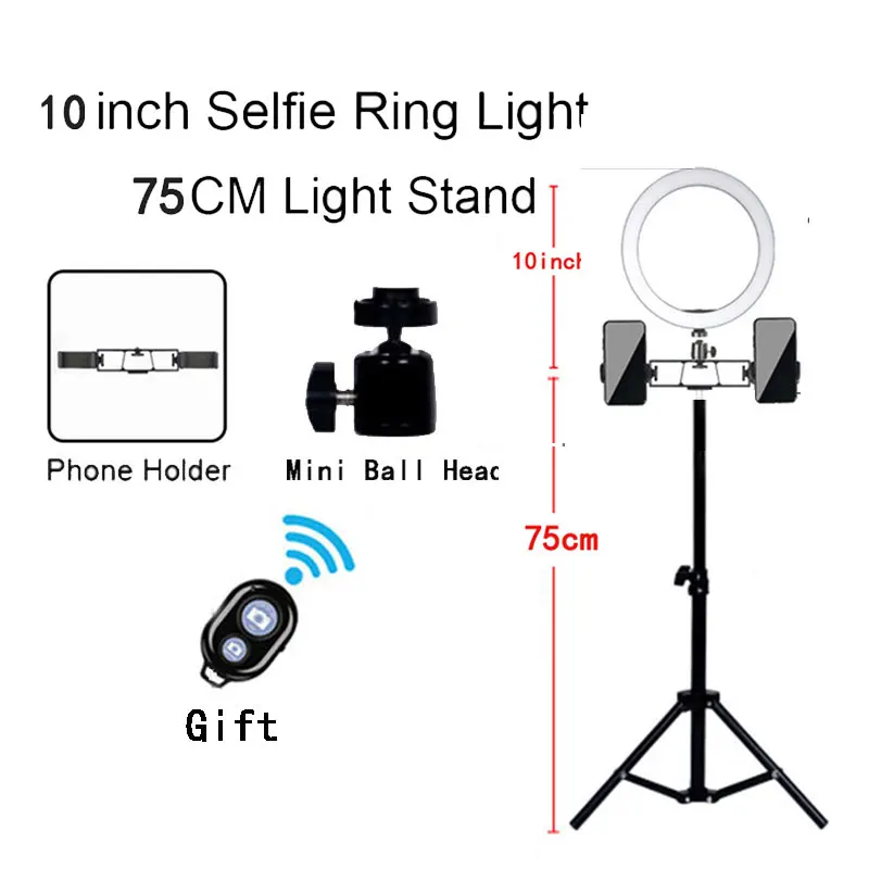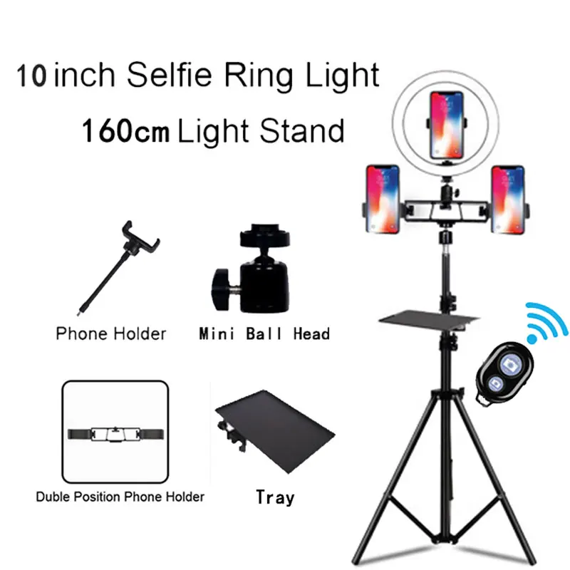 Кольцо-светильник TikTok10, светодиодное, для видеозаписи, для селфи, USB, светильник держателем для телефона, Треногой, подставкой для макияжа, Youtube