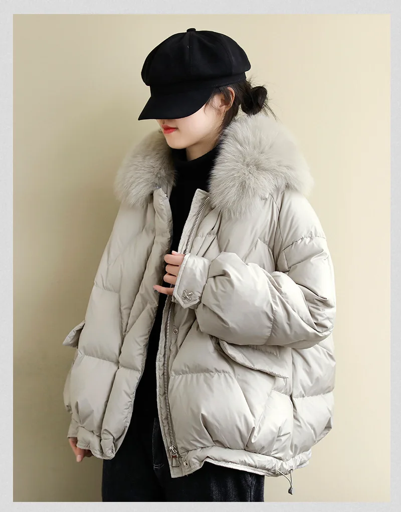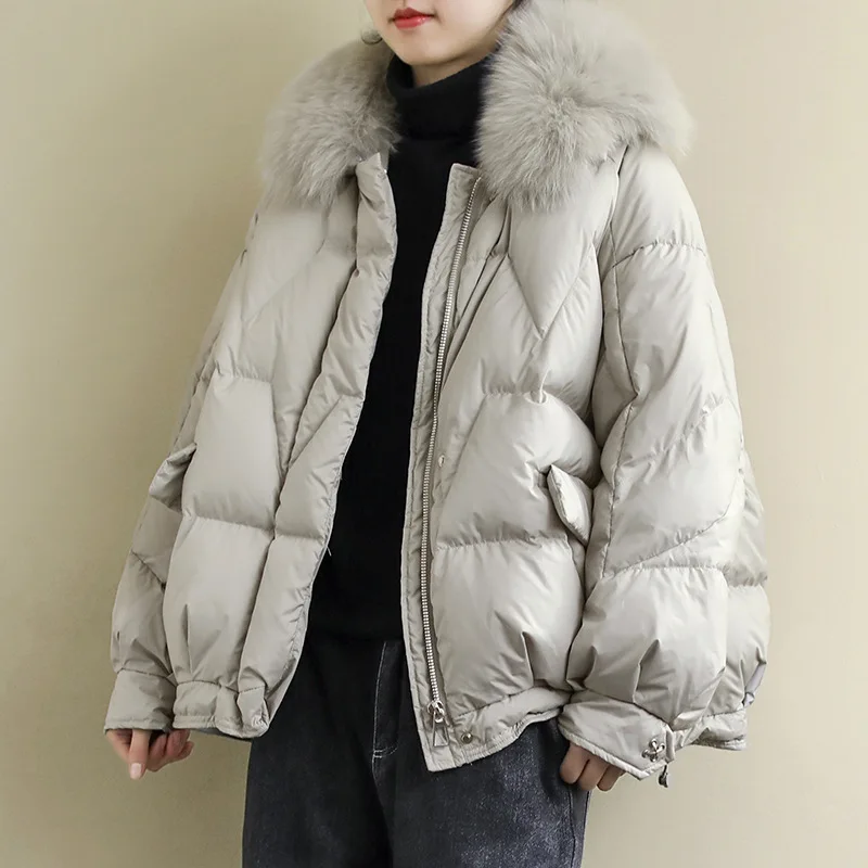 Женская зимняя куртка с воротником из натурального меха, в европейском стиле