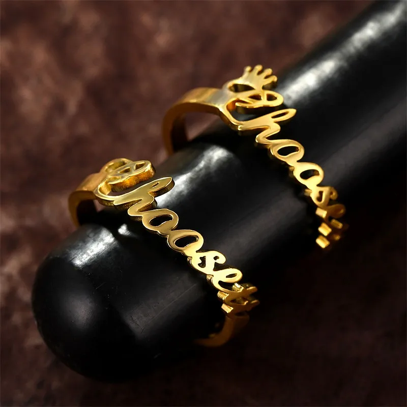 Индивидуальные Кольца из нержавеющей стали, кольца с именем для жен...