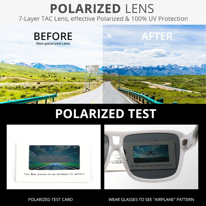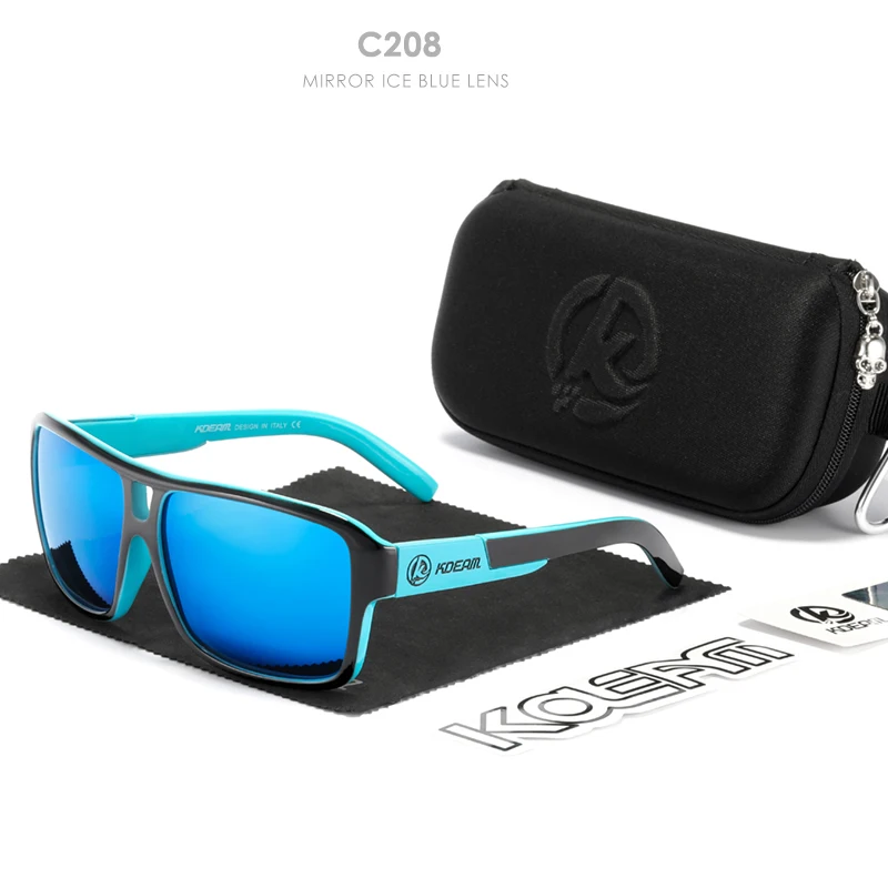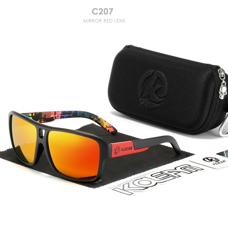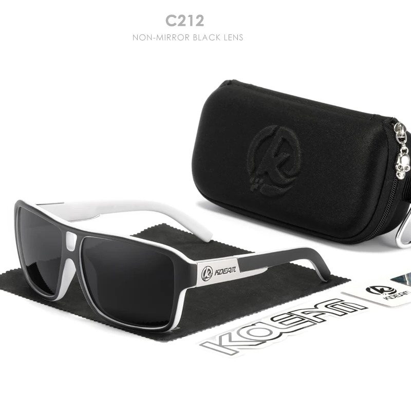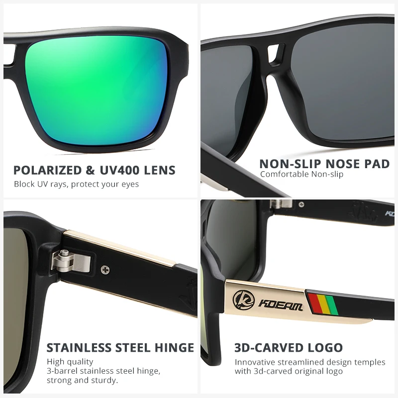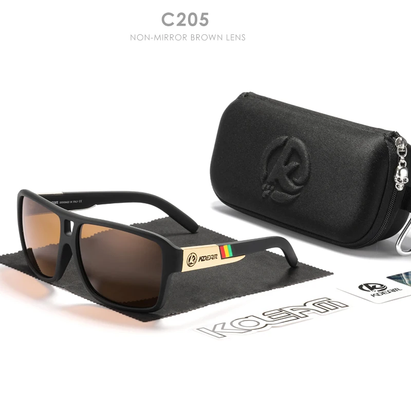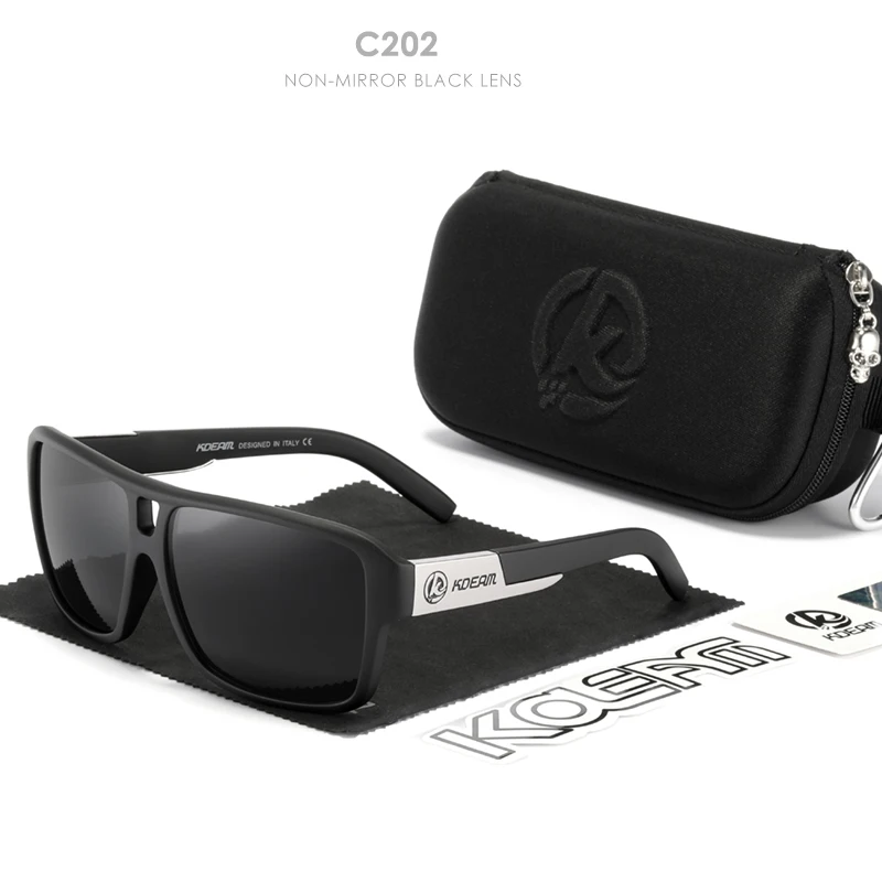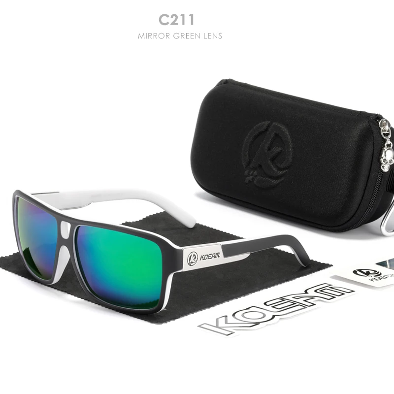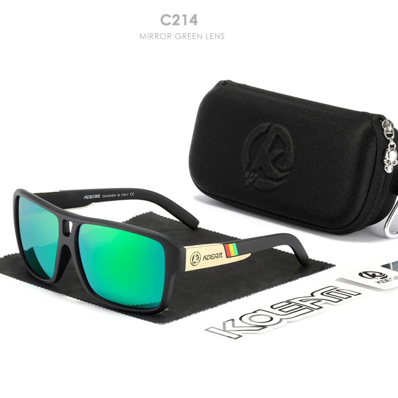 Мужские поляризационные солнцезащитные очки KDEAM Jam Lifestyle, квадратные большие зеркальные солнечные очки со вспышкой, в жесткой коробке