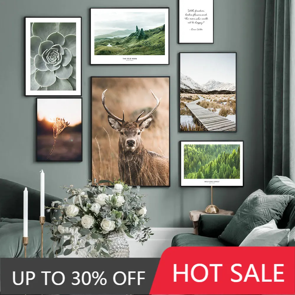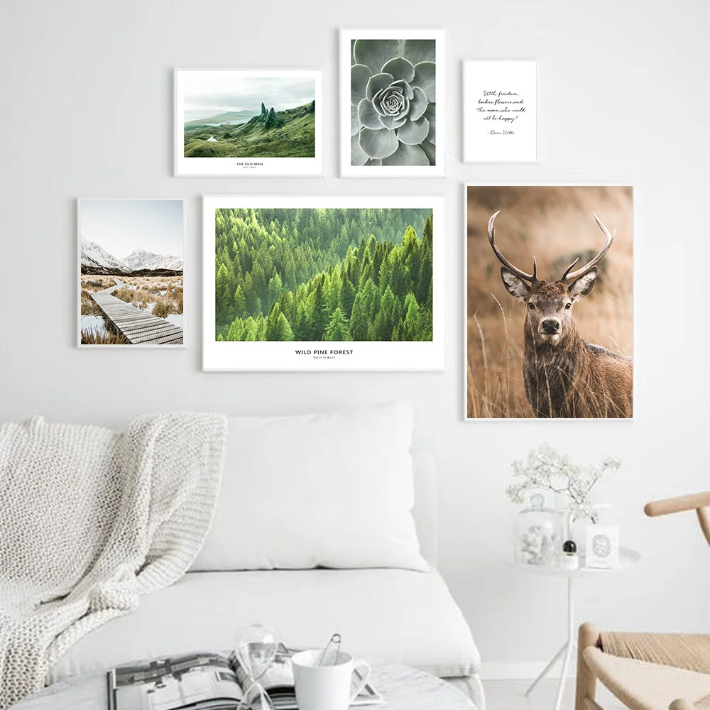 Плакат на холсте Горное пастбище, скандинавский стиль, настенная живопись, олень животное Принт дикий форсет, картины с природой, декор для гостиной