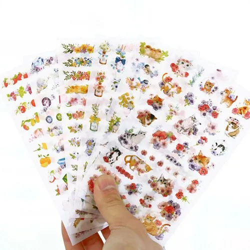 6 листов с цветами Набор наклеек на милый кот птица фруктовые духи алмазные наклейки украшения для альбом дневник школы рамки 6956