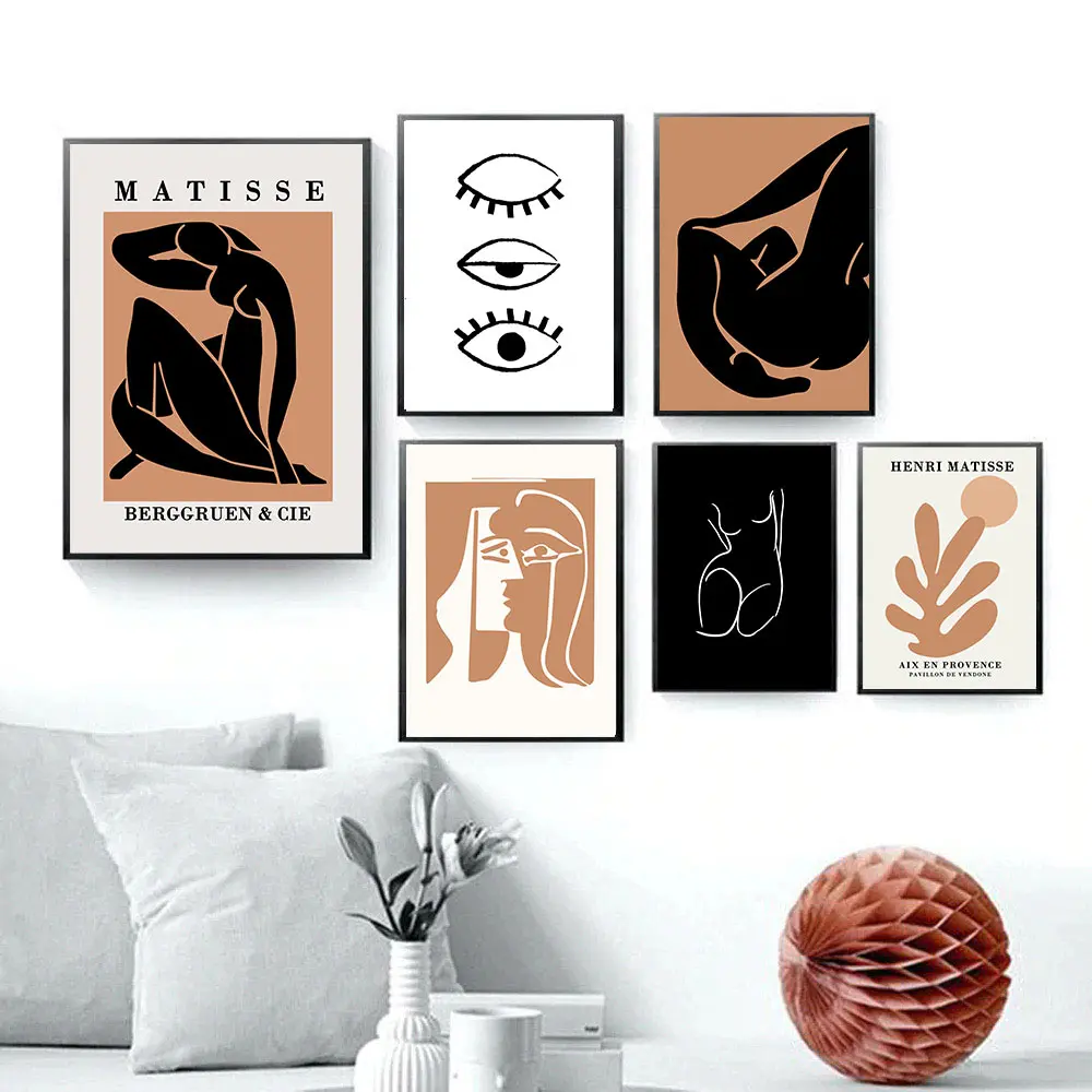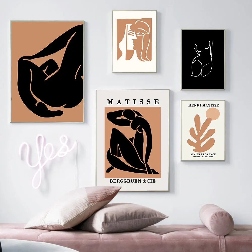 Абстрактная настенная живопись на холсте, линия, лица, тела, плакат...
