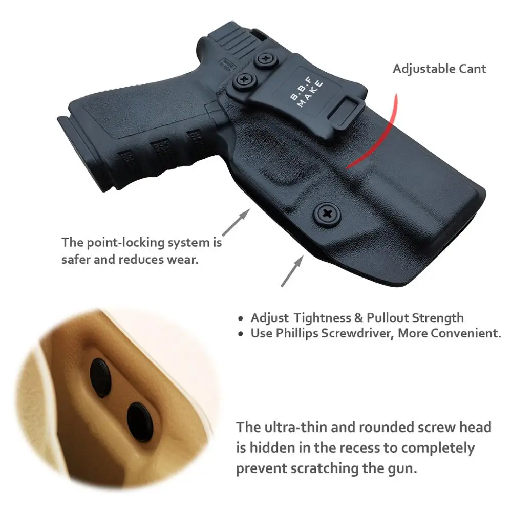 ● Носить с собой с уверенностью: пожалуйста, не стесняйтесь использовать Б. Б. Ф. Сделать Портативный Скрытая кобура для защиты Glock 19 кобуры. Это наш третьего поколения Kydex кобура IWB идеально подходит для Glock 19 19X 23 25 32-45 (Gen, для детей от 1 года до 5 лет) кобуре. Он не только высокоточный, но также прочный и прочный, может быть скрыт и портативный, так что вы можете защитить себя в любое время и в любом месте.