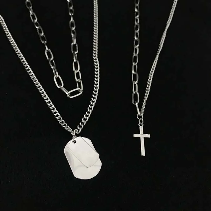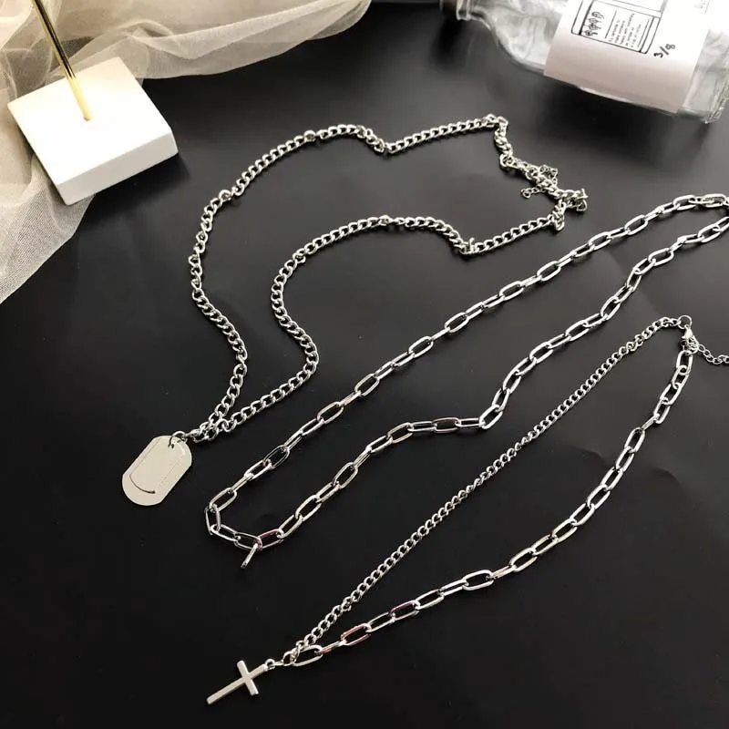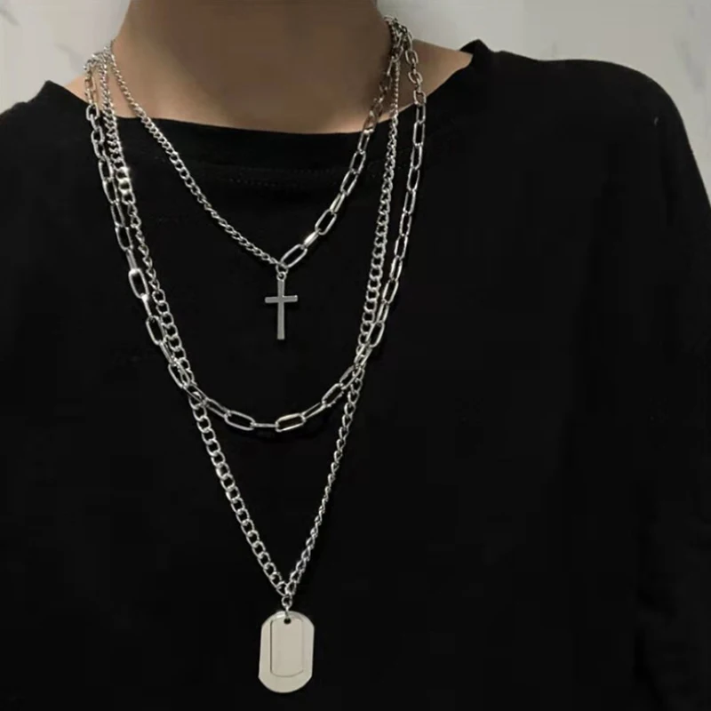 Цепочка многослойное ожерелье с подвеской крест в стиле хип-хоп для женщин, ожерелье из длинной цепи в готическом стиле, бижутерия, аксессуары для мужчин и женщин