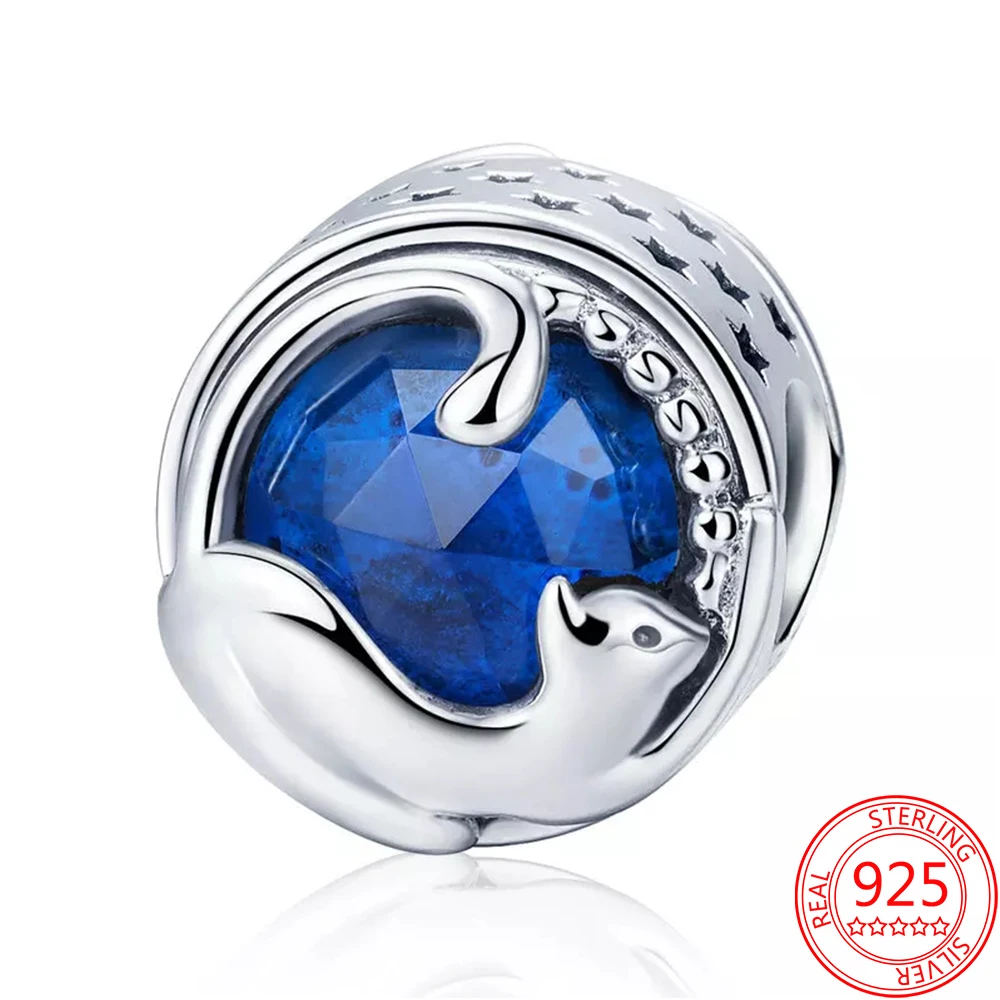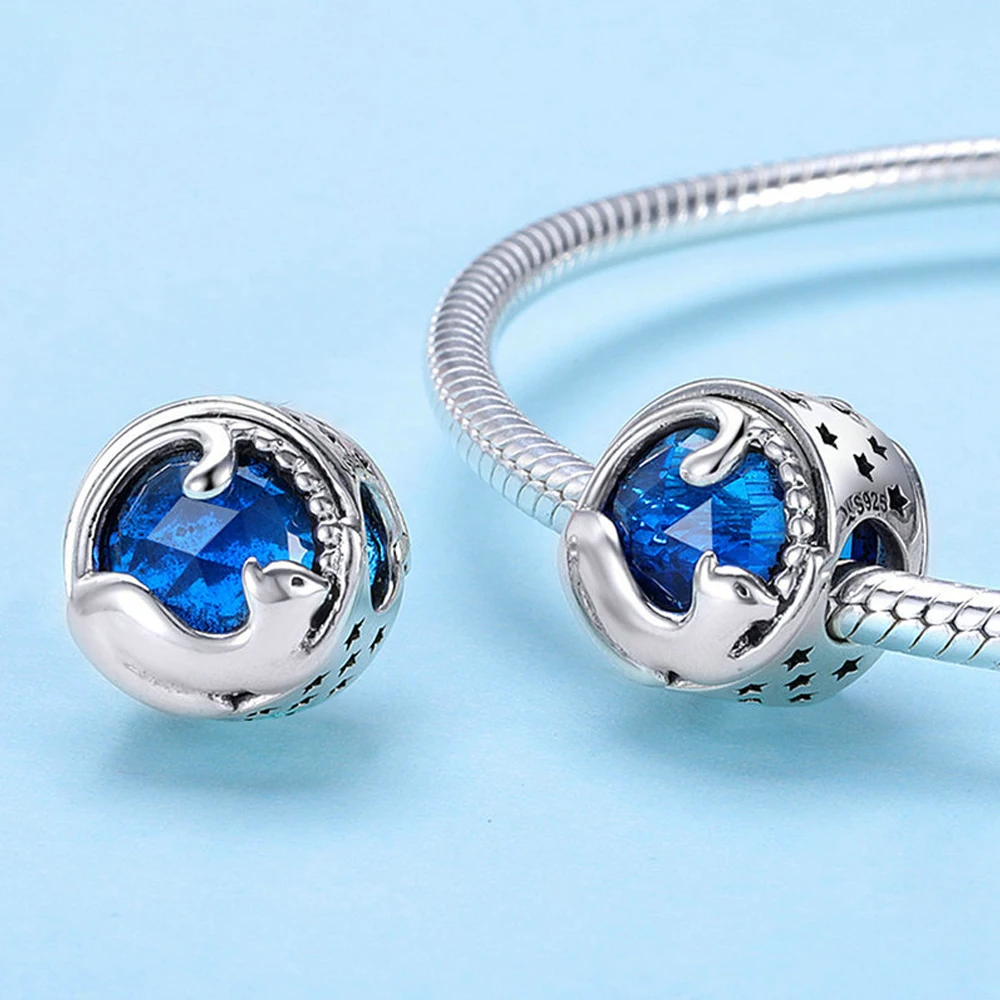 Бусина-Шарм синего цвета, из серебра 925 пробы