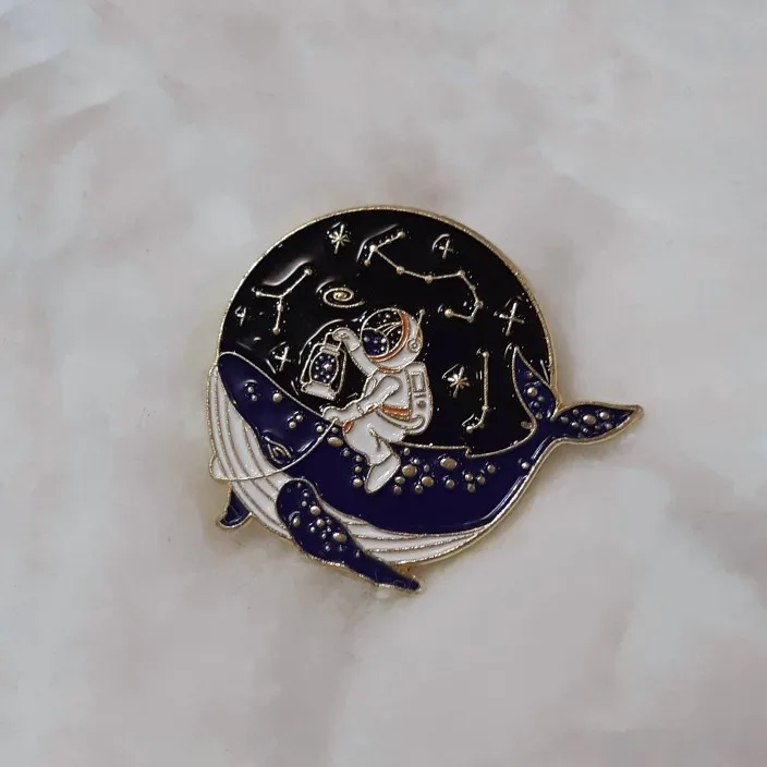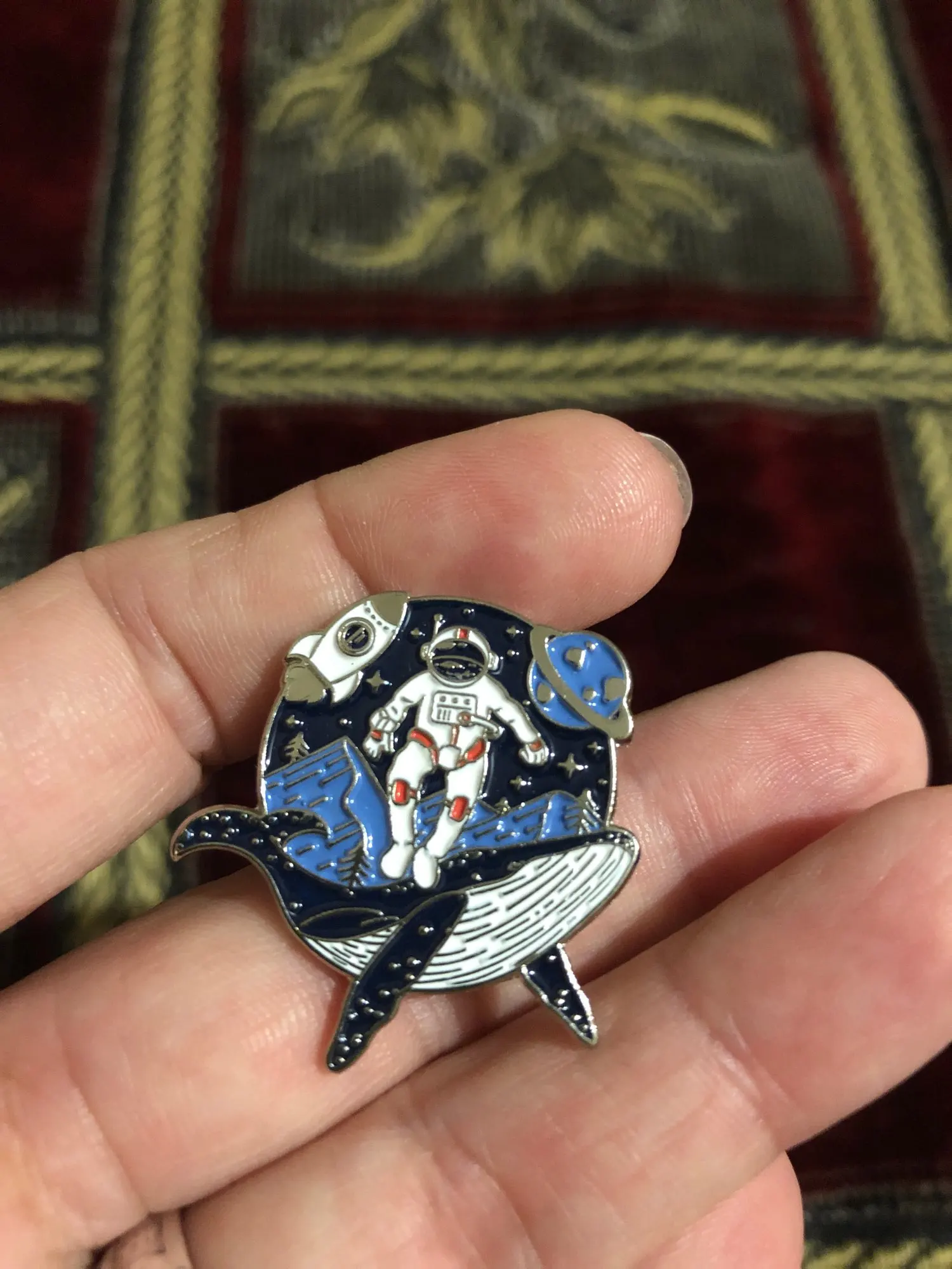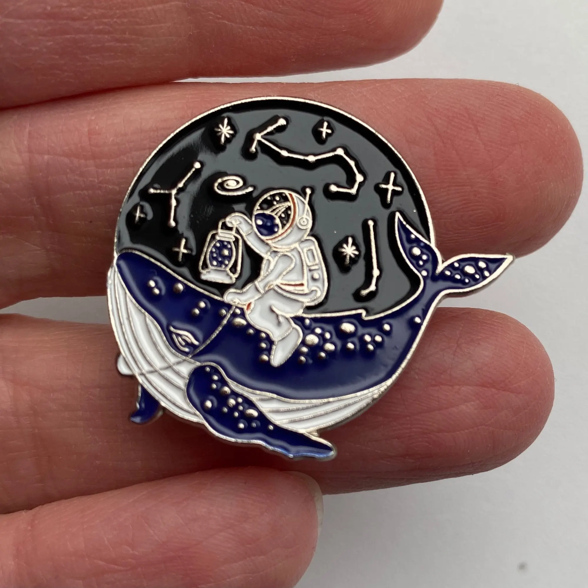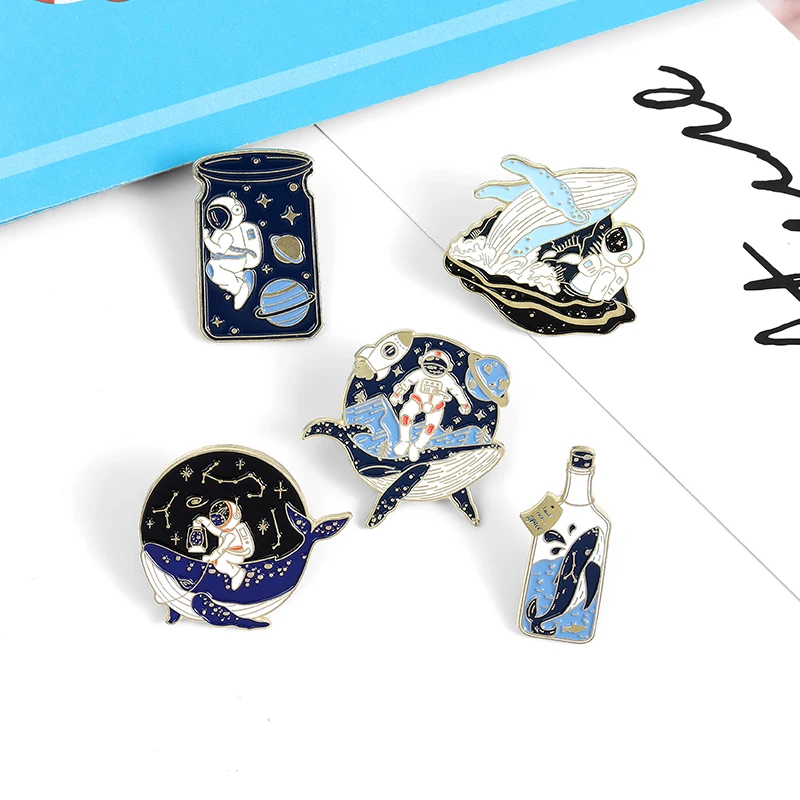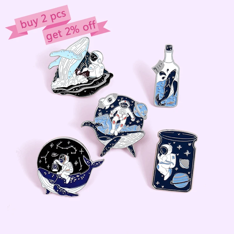 Значок на лацкан с изображением космонавта и Кита, приключения, океана, дрейфующих желаний, броши в виде бутылки, ювелирное изделие, подарок для друзей