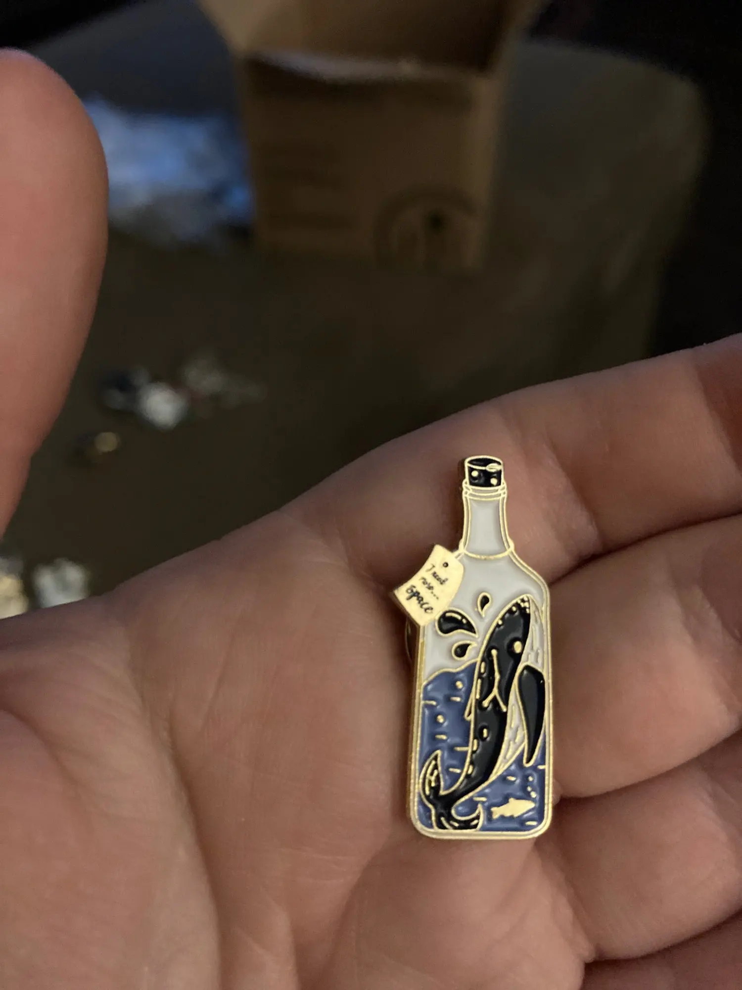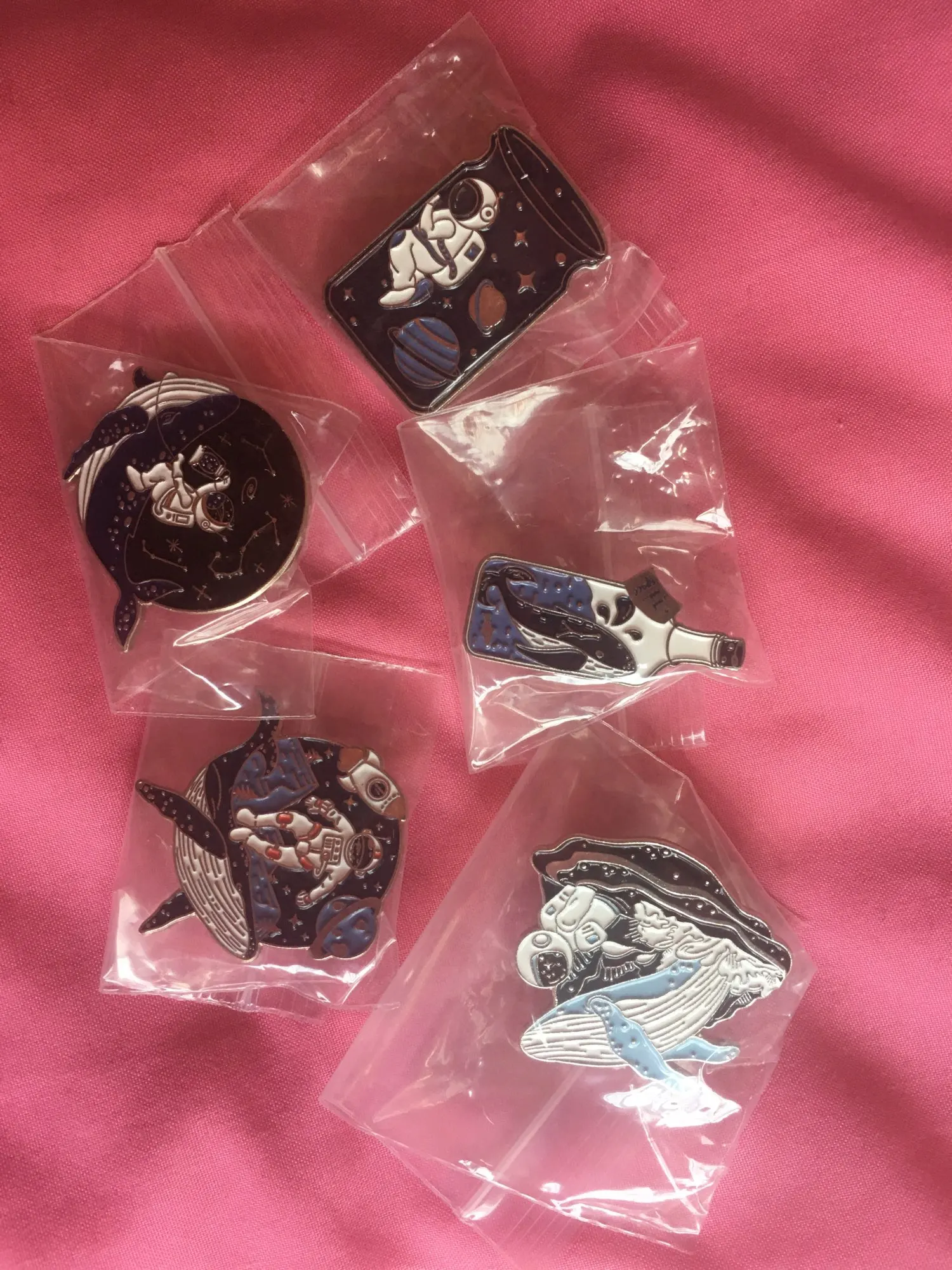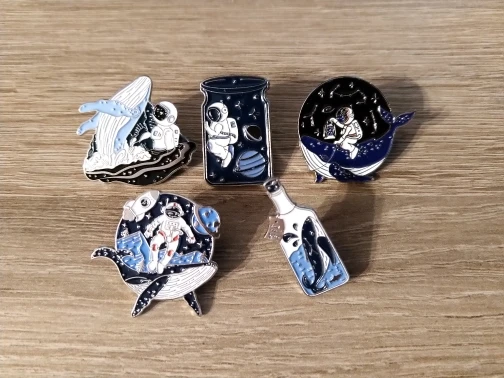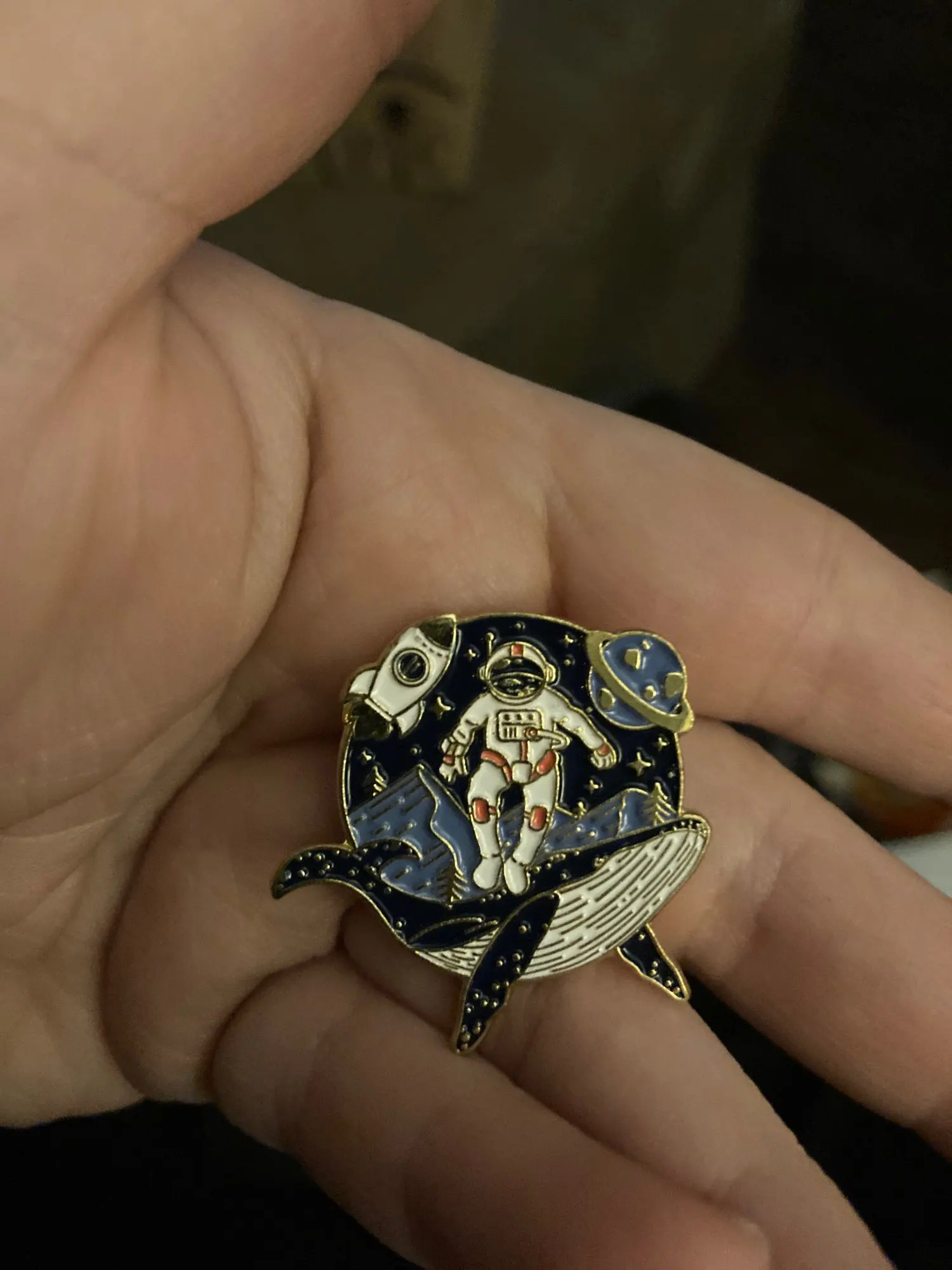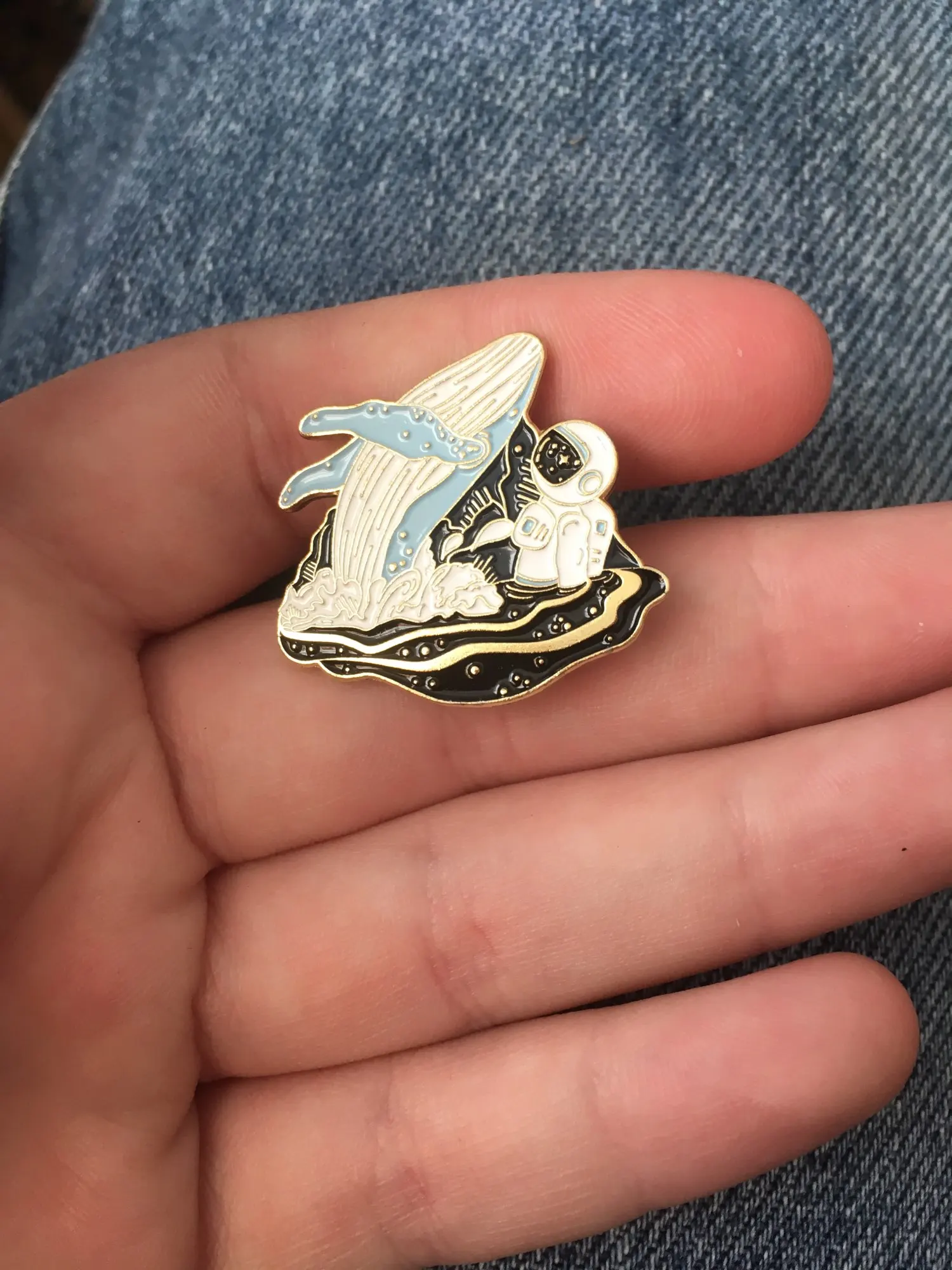 Значок на лацкан с изображением космонавта и Кита, приключения, океана, дрейфующих желаний, броши в виде бутылки, ювелирное изделие, подарок для друзей
