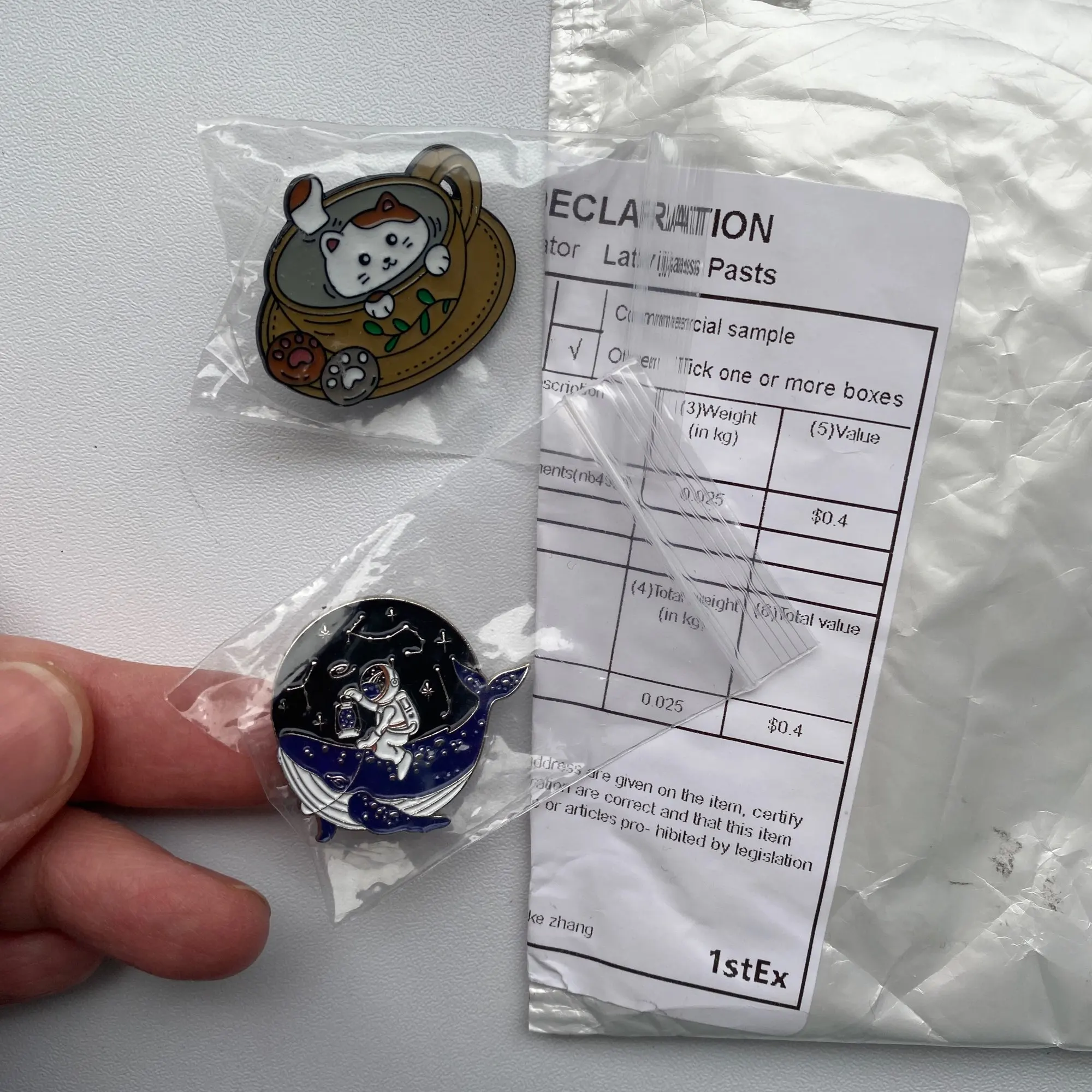 Заказал 15.12, прибыл на почту 30.12 - буквально чуть больше двух недель до Санкт-Петербурга. Всё отслеживалось, с продавцом не общался. Зажим очень крепкий и прослужит долго, можете не сомневаться в качестве. Значки не тяжёлые, но я не советую вешать их на футболки или свитшоты - лучше на пиджак или верхнюю одежду, сам для формы в колледж и покупал. И нет, я ни разу не играл в Амонг Ас.