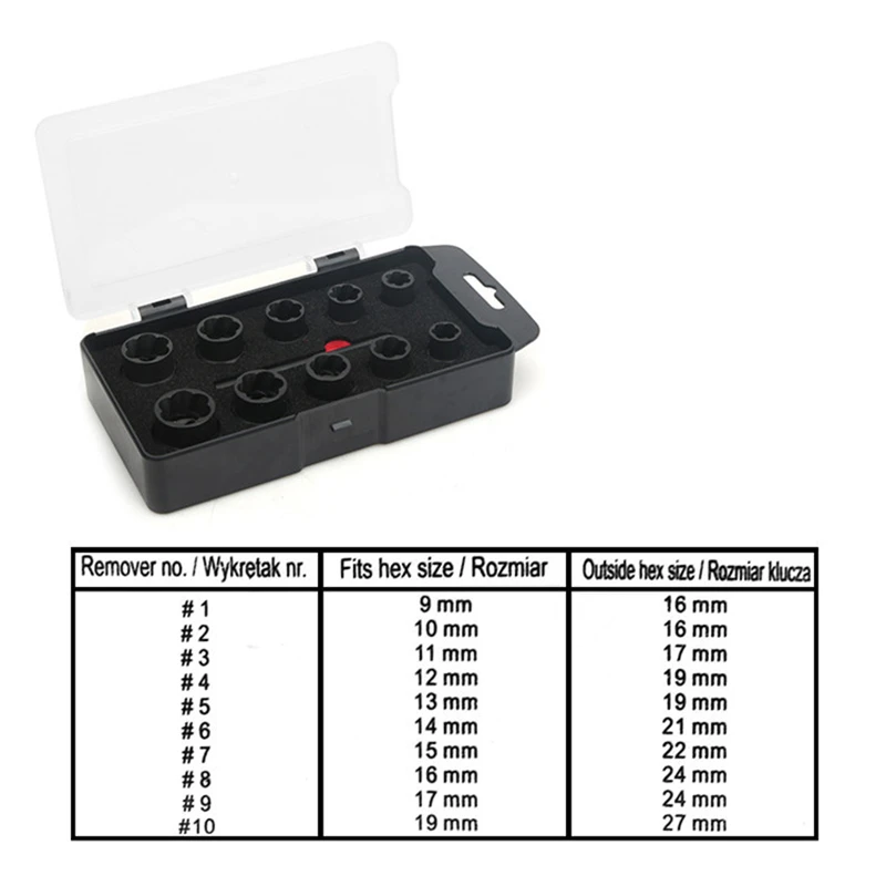 11 шт. набор спиральных розеток 38 дюйма Dr. Поврежденный замок, инструмент для розетки