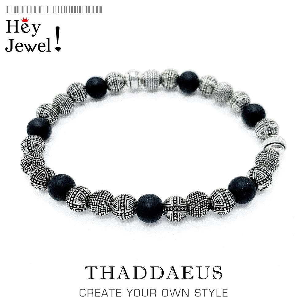 Браслеты из серебряного креста и обсидиана, 925 пробы серебряные, для мужчин, модный подарок в европейском стиле, мужские браслеты с сердцем Rebel
