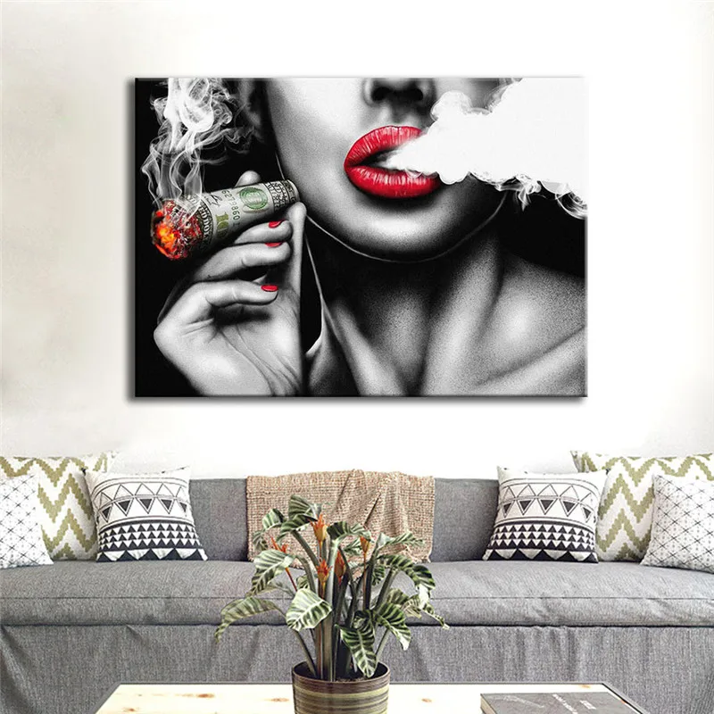 Красные губы курительные персонажи винтажные картины на стену Женск...