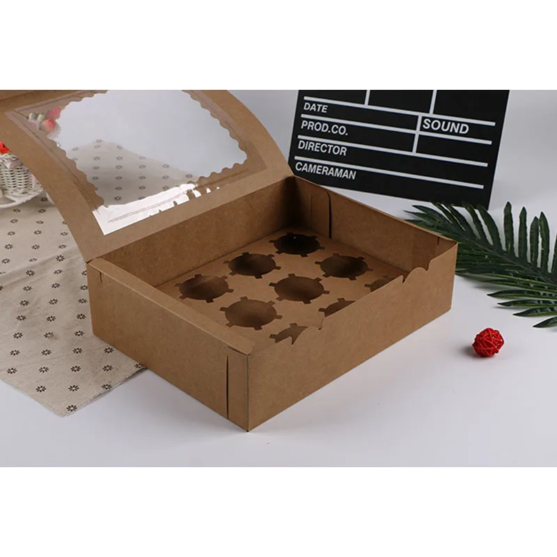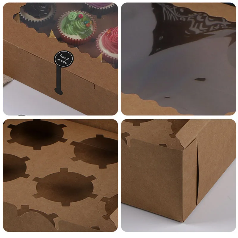 Коробка из крафт-бумаги, 10 шт., 12 чашек, кексов, кексов, для свадьбы, дня рождения, десерта