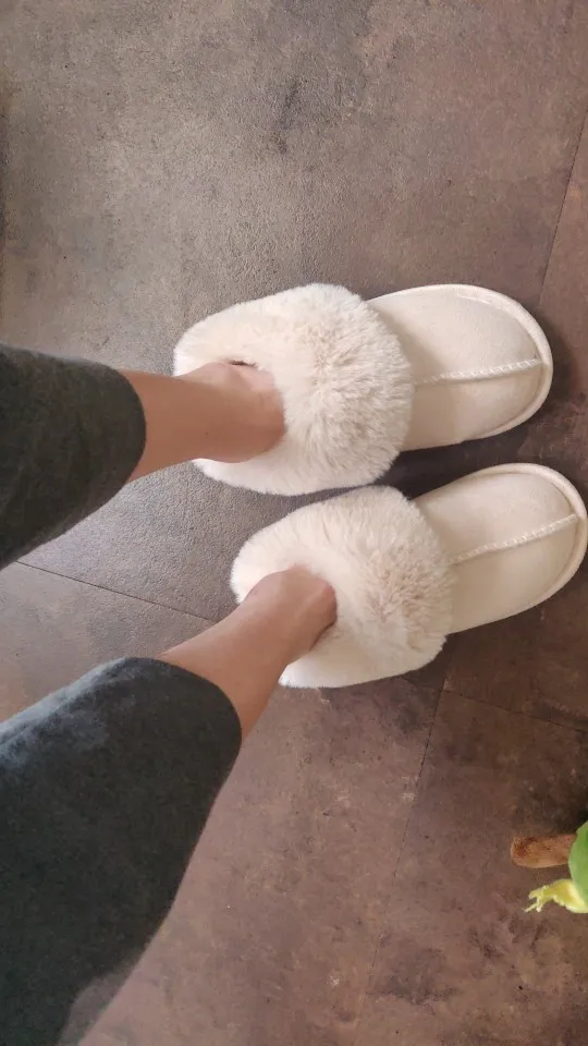 Красивые тапочки. Очень толстый мех, кажется мне красивым и теплым. Все довольны. Называемый Размер n, выбирайте больше или 2.