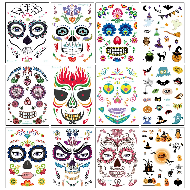 Модные экологически чистые Водонепроницаемые декоративные реквизиты на Хэллоуин, временные тату-наклейки, наклейки для лица, атмосферные маскарадные татуировки, 1 шт.