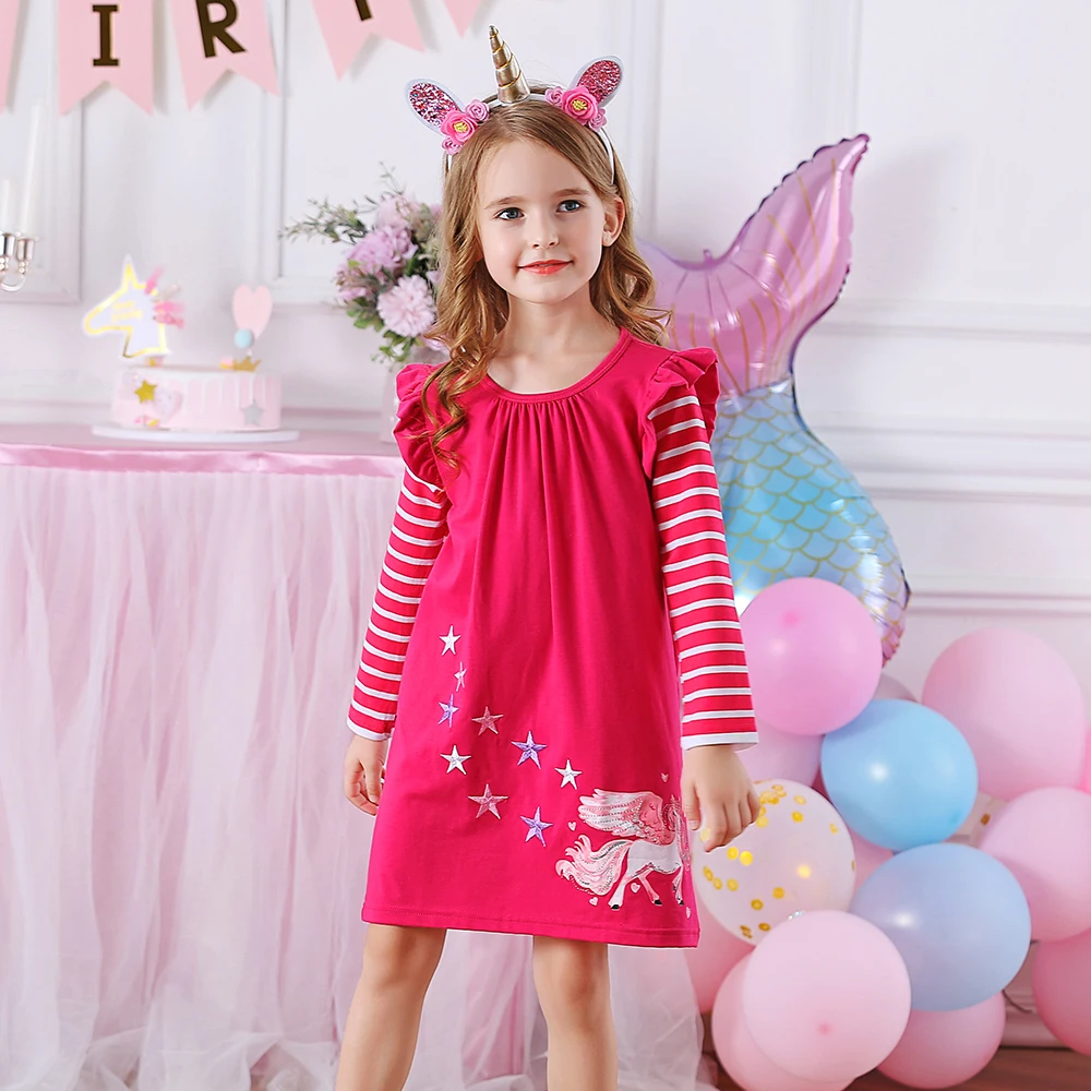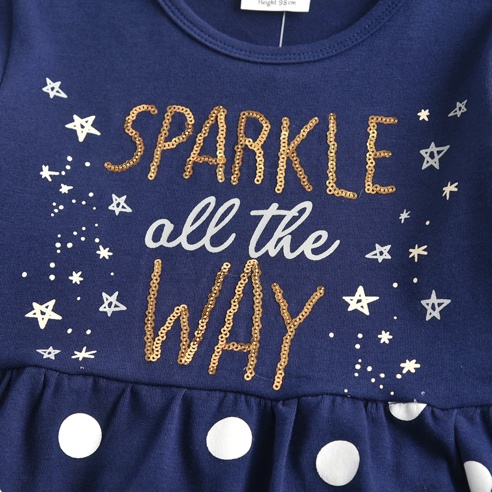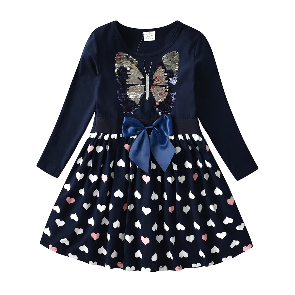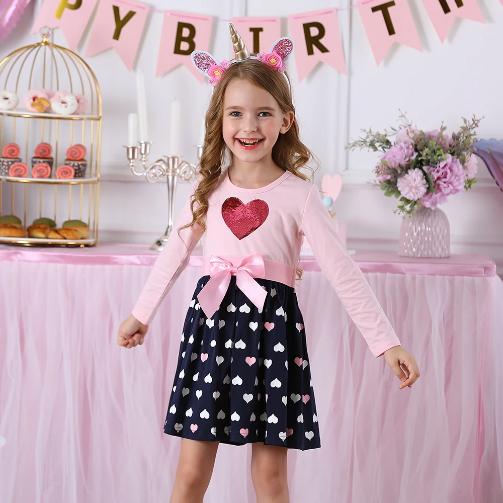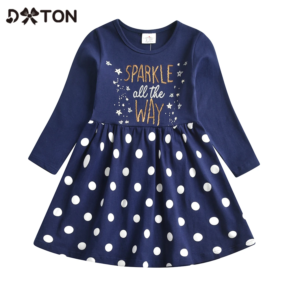 Рождественское платье для девочек DXTON, хлопковое детское платье с длинным рукавом, с блестками, для дня рождения, зимняя одежда