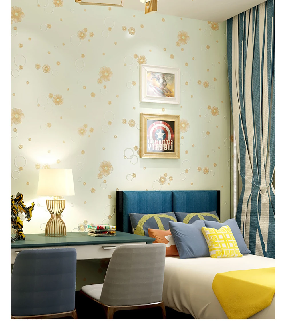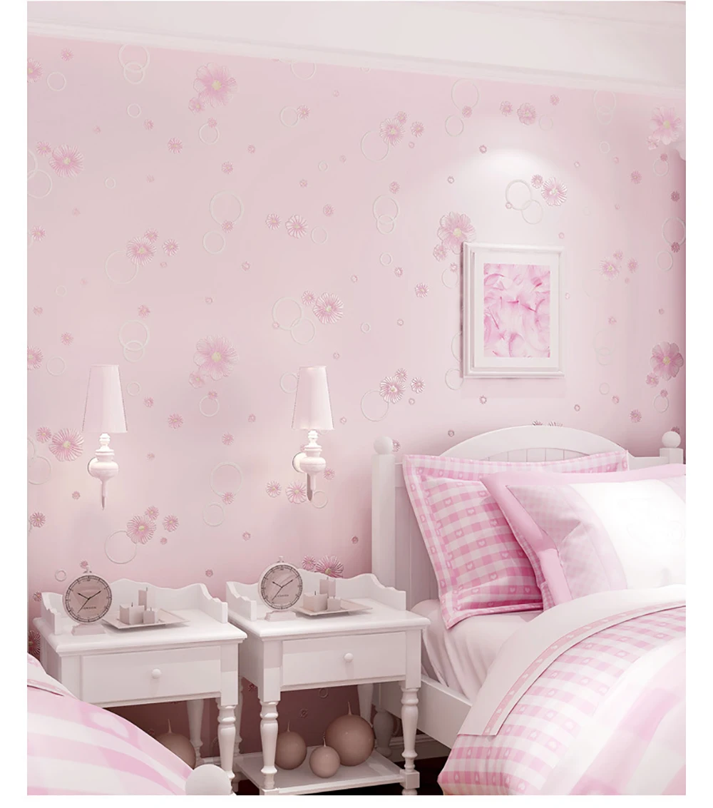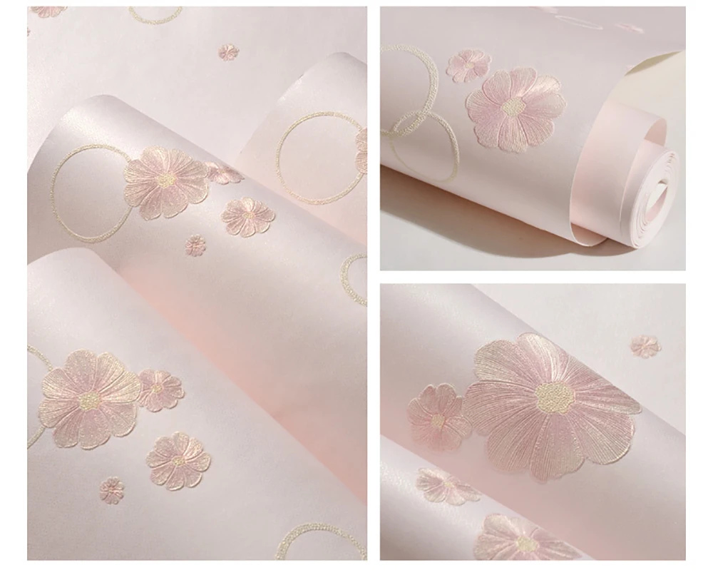 Американский Сад 3D обои тонкий прессованный цветочный нетканый самоклеющиеся обои спальня девушка комната Розовые Обои W156