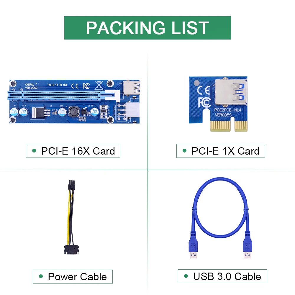 CHIPAL VER006C Pcie Pci-e Pci Express Riser Card 1x To 16x GPU Usb 3,0 удлинитель Riser X1 X16 адаптер для карт SATA 6Pin кабель питания