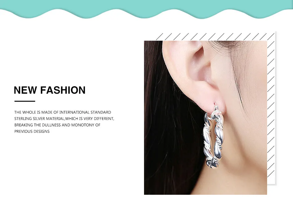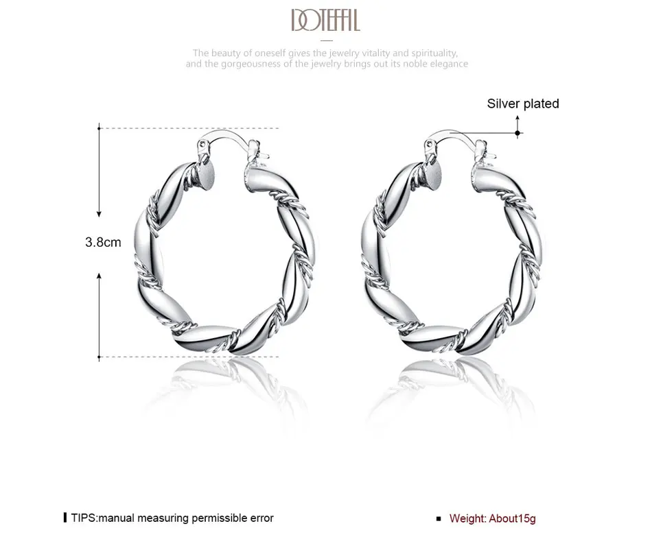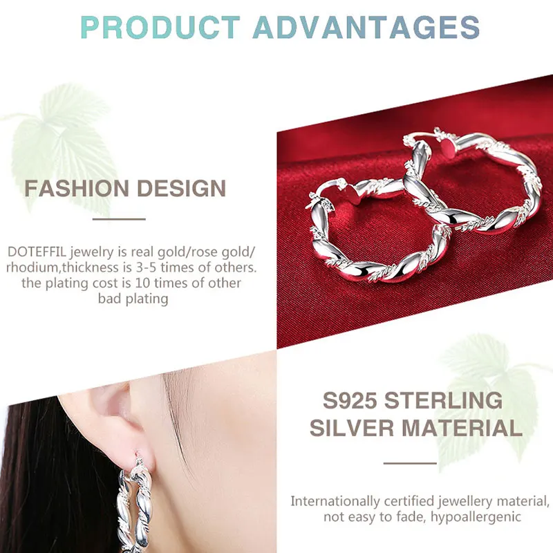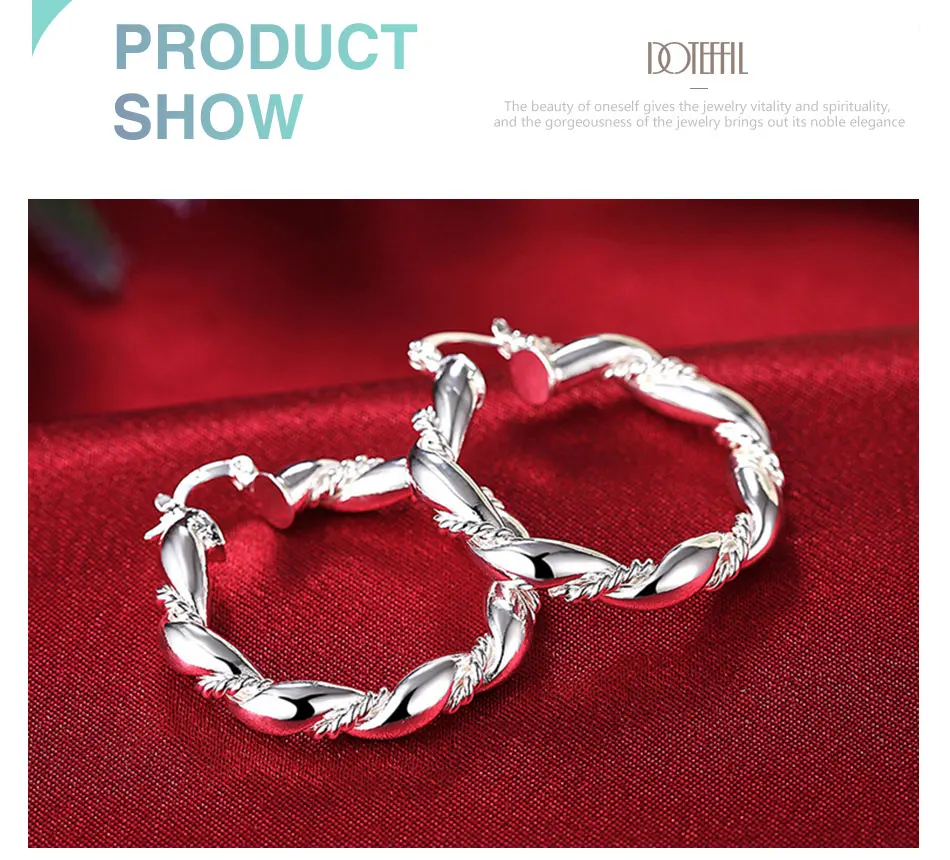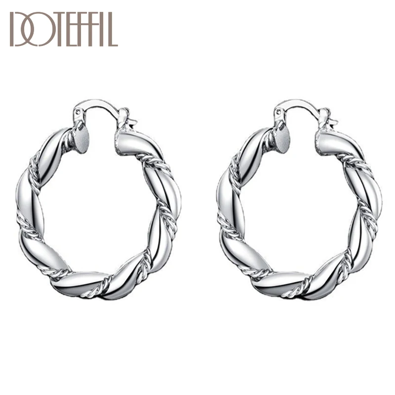 Круглые серьги-кольца DOTEFFIL из стерлингового серебра 925 пробы с витой веревкой для женщин, изящные вечерние ювелирные украшения для свадьбы и помолвки