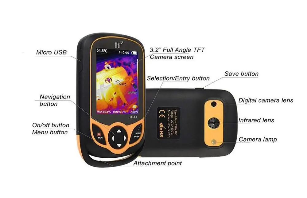 2. Этот продукт представляет собой инфракрасную камеру, которая объединяет измерение температуры поверхности и тепловое изображение в реальном времени.