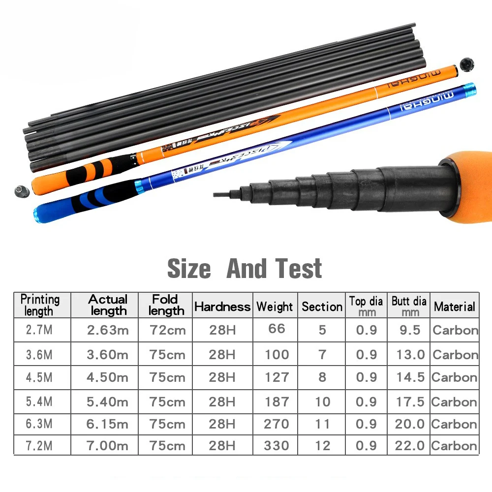 Сверхлегкая телескопическая удочка из углеродного волокна, телескопическая удочка, ручная удочка для ловли карпа, длина 6,3-М